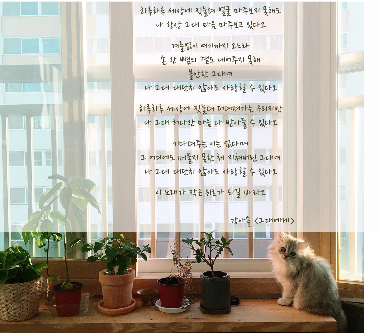 그리고 제가 키우던 고양이 '루미' 아깽이 시절 사진에 노래 가사를 넣어 봤어요.