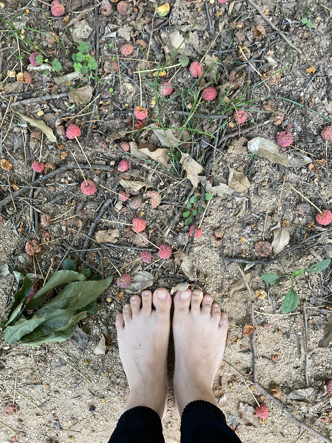 ♥ 아침에 맨발 걷기를 할 때, 떠오른 해의 주황빛이 숲을 물들여서 참 아름다웠다. 자연에 감사하다.