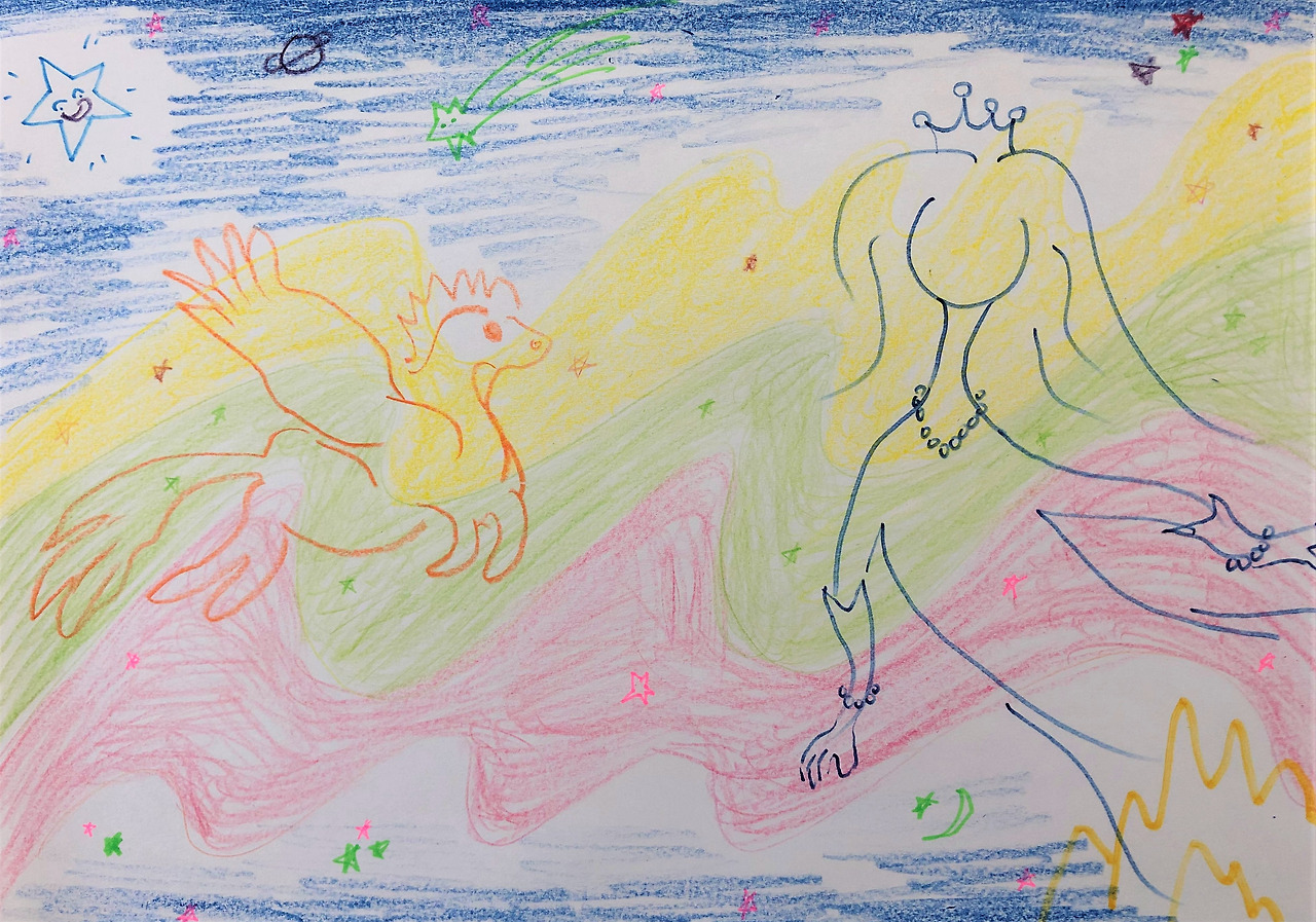 그뿐만 아니다. 두 사람은 페가수스를 타고 밤하늘 꼭대기로 올라가 북극성 근처까지 갔었다. 그 도중에서 만났던 수많은 별들. 형형색색으로 빛나는 별들마다 신비한 소리를 내서 우주 속은 거대한 오케스트라 무대 같았다. 게다가 은하수는 평소보다 더욱 밝게 흐르며 그곳으로부터 별빛 바람이 살랑살랑 불어오는 것이었다.