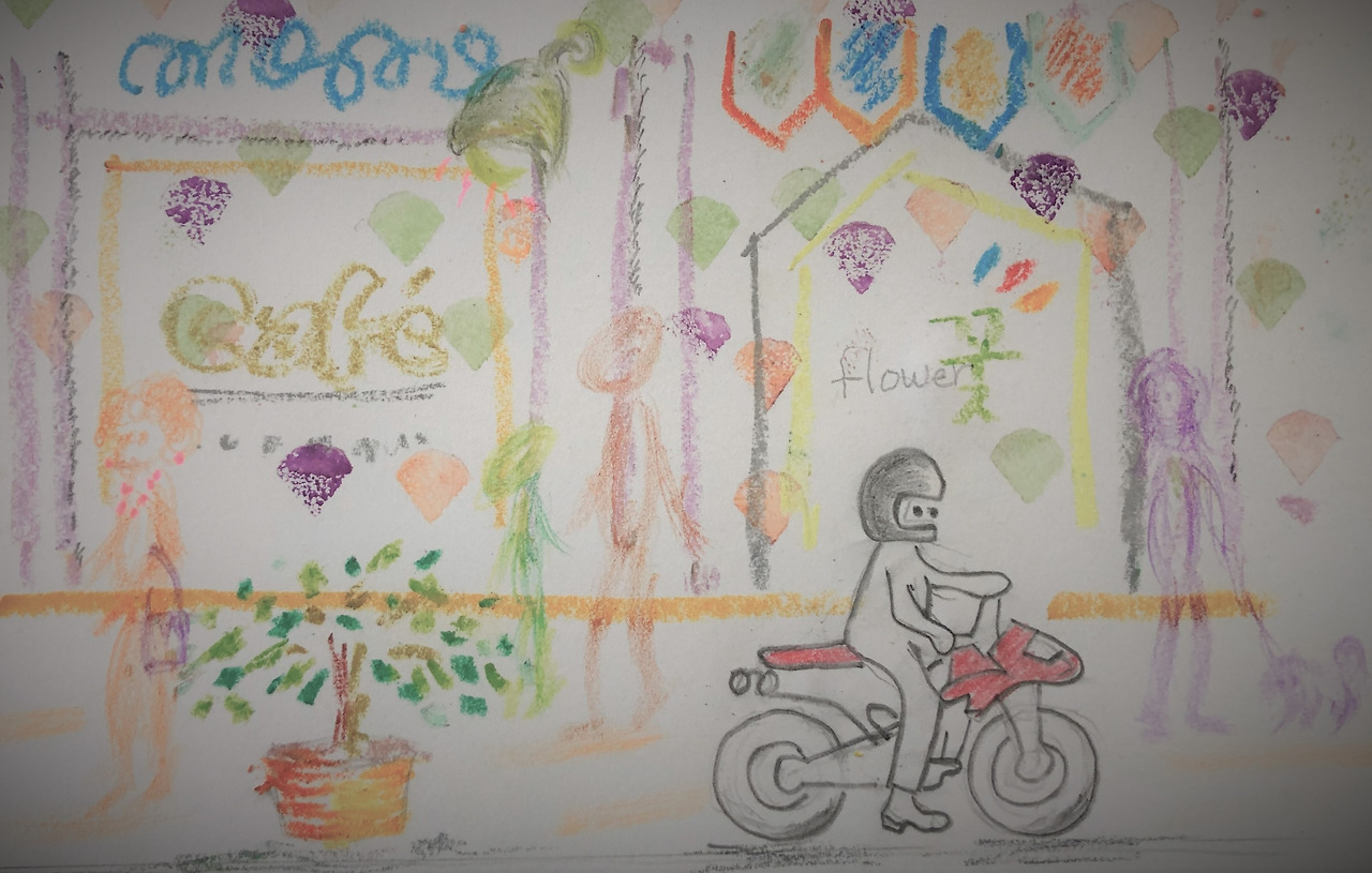 오토바이는 사직터널 쪽에서 달려와서 광화문 앞을 지나 삼청동 방면으로 돌아 경복궁 정문 앞으로 달려갔다. 고속, 과속으로. 그 순간 경찰차가 사이렌 소리를 내며 뒤쫓아간다. 그러나 곧 오토바이는 사람들 시야에서 사라져 버리고 말았다. 어느 골목으로 들어갔는지, 아니면 하늘로 솟았는지 알 수 없지만.