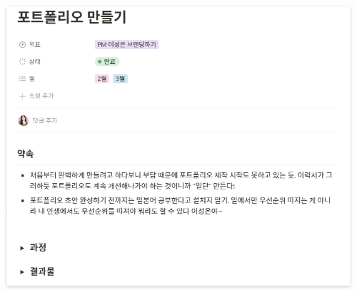 퇴근 후와 주말 시간을 활용해서 내 일을 돌아보는 과정이 체력적으로 힘들기도 했지만, 쉽게 타협하지 않고 끈기 있게 무언가를 해낸 경험을 돌아보며 뿌듯하기도 했고 / 일의 시작과 끝을 한번에 돌아보니 '이건 이렇게 할 걸' 싶은 것이 있어 후회가 느껴지기도 하는 시간이었습니다. '이성은_포트폴리오.pdf' 파일을 한 손에 든든히 얻어낸 것도 큰 성과였지만 내 일과 고민을 돌아보는 과정 자체도 참 소중했습니다.
