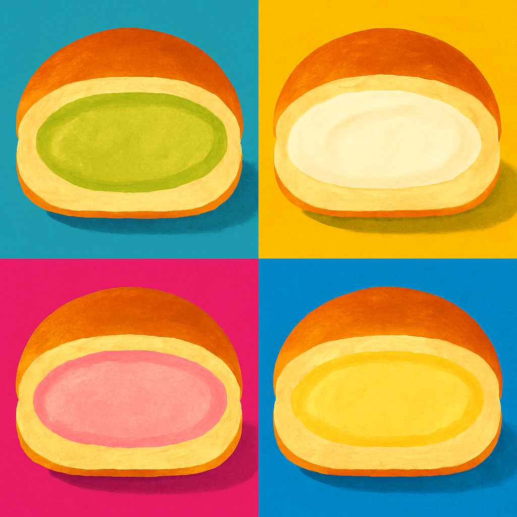 크림빵은 발전했고 이제는 크림빵인지, 밀가루 손잡이를 잡아 크림을 퍼먹는 것인지 헷갈릴 정도다. 새로운 크림빵은 일상에 가까워져서 발에 차고 넘치는 편의점에서도 만날 수 있게 되었다. 빵을 반 갈랐을 때 흘러내리는 형형색색의 폭력적인 크림이 얼마나 많은 사람들에게 큰 만족감을 주는지 매달 혹은 매주 새로운 맛이 출시된다.