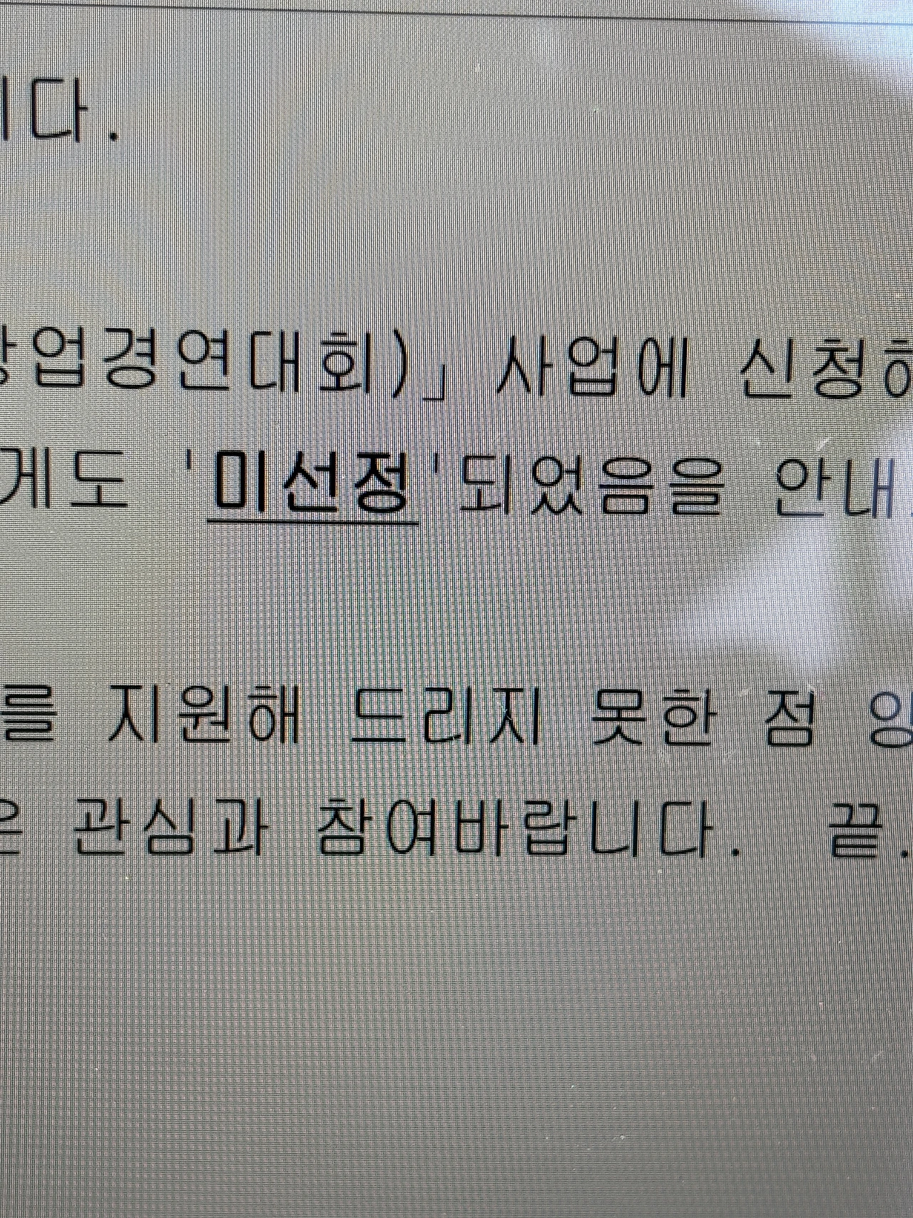 지난주까지만 해도 간절했던 사업인데 미선정 메일을 받고 꽤 덤덤했다.