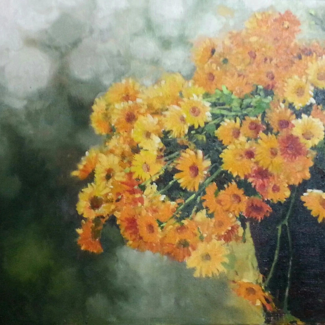 모양 고운 울 밑 국화는 쇠잔한 가을을 달랜다>