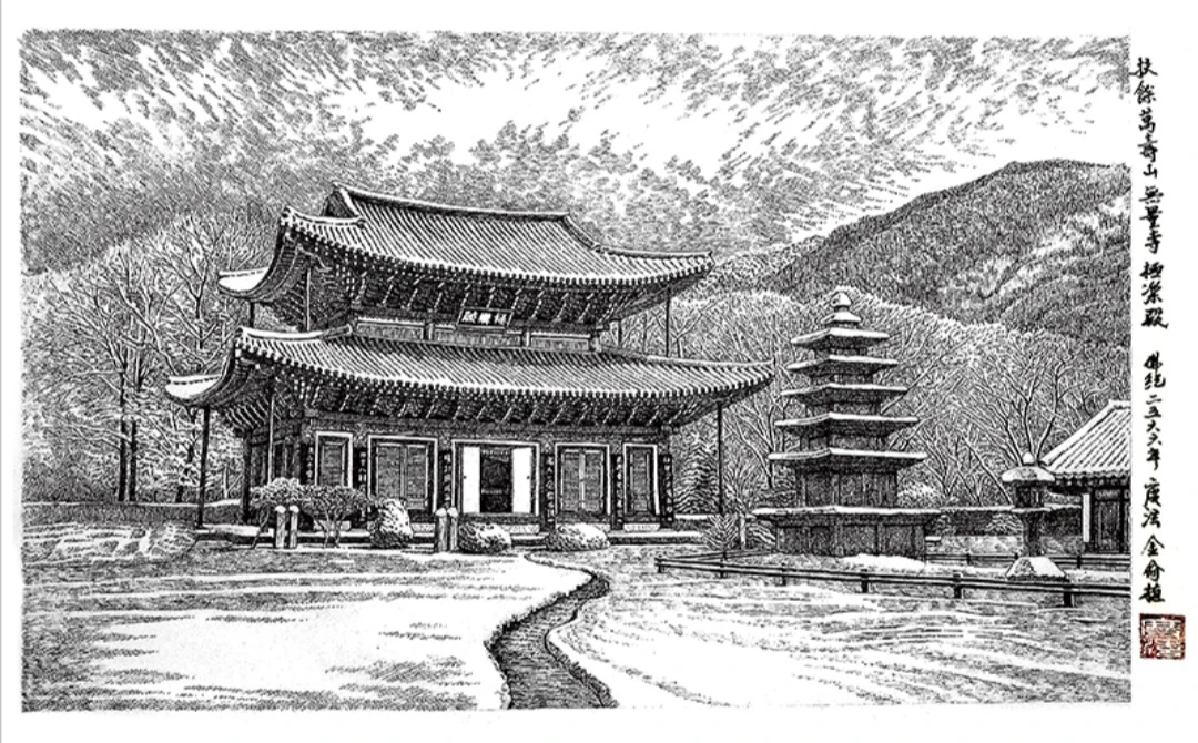그림 / 화가 김유식 - 부여 무량사 극락전 설경