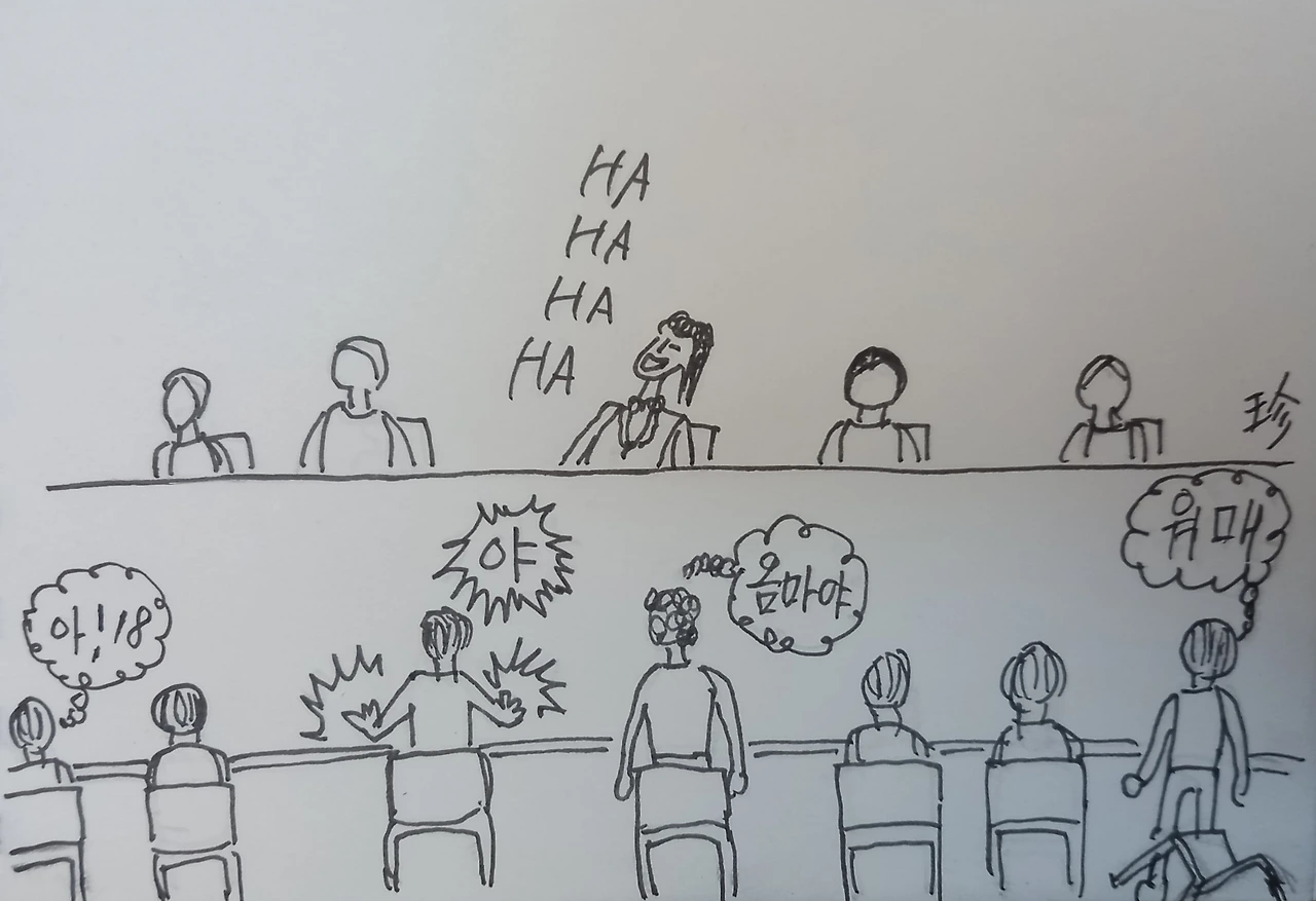떨어지며 의자가 자빠졌다. 내 앞 유진숙