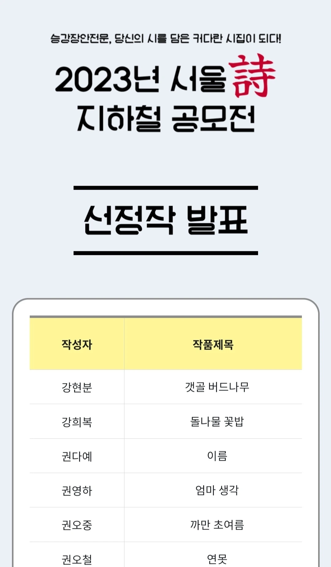 2023년 서울시 지하철 공모전에 당선되셨습니다. 감사합니다.