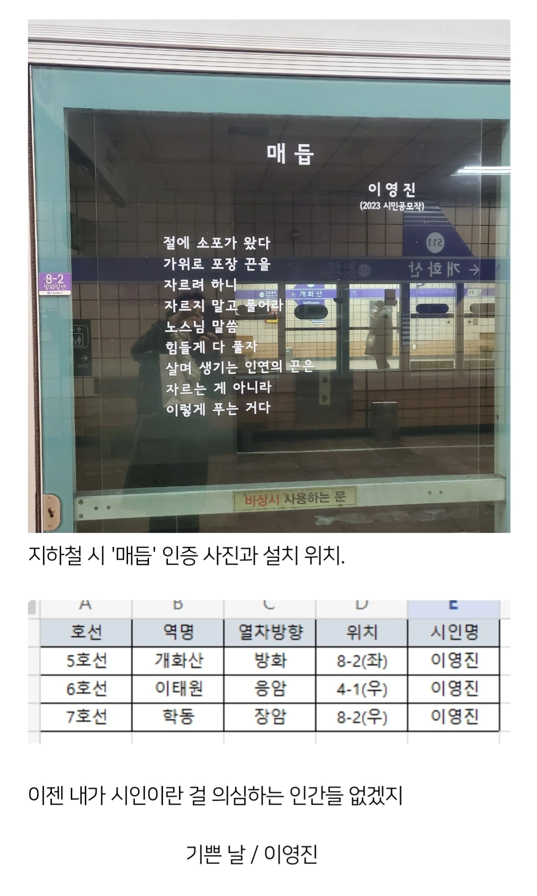 수필춘추 신인상(수필), 종로 문협 신인상(시), 다솔문학상(시), 월간 문학 신인상(민조시), 산문집 <내가 사랑한 소소한 일상들>, 시집 <시와 그림이 만날 때>,