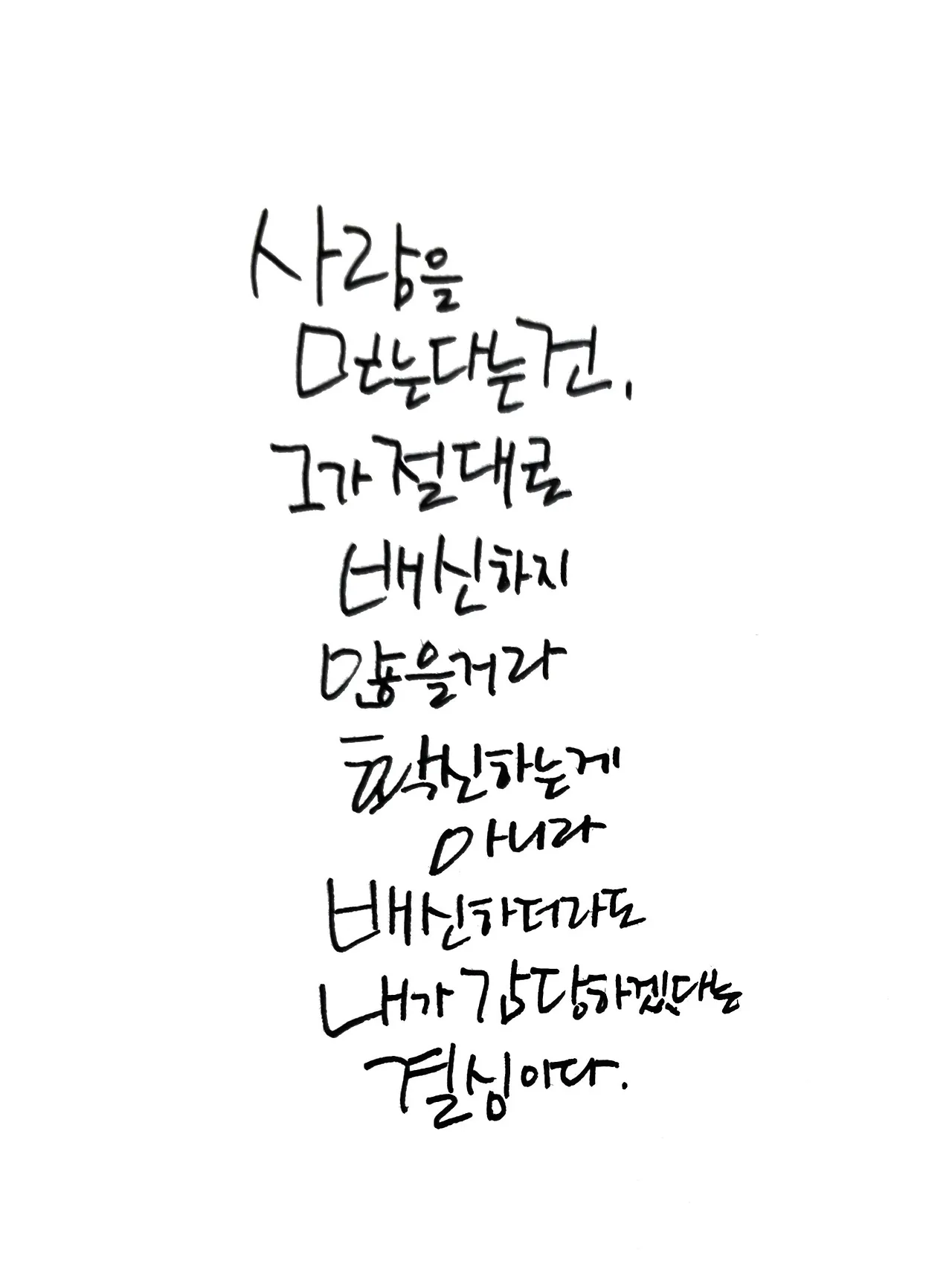 상대에게 완벽한 신뢰를 요구하면 의심만 늘어납니다. 진정한 어른의 관계는 '상처받지 않으려는 방어'가 아니라 '상처받을지라도 사랑하겠다는 용기'에서 나옵니다.