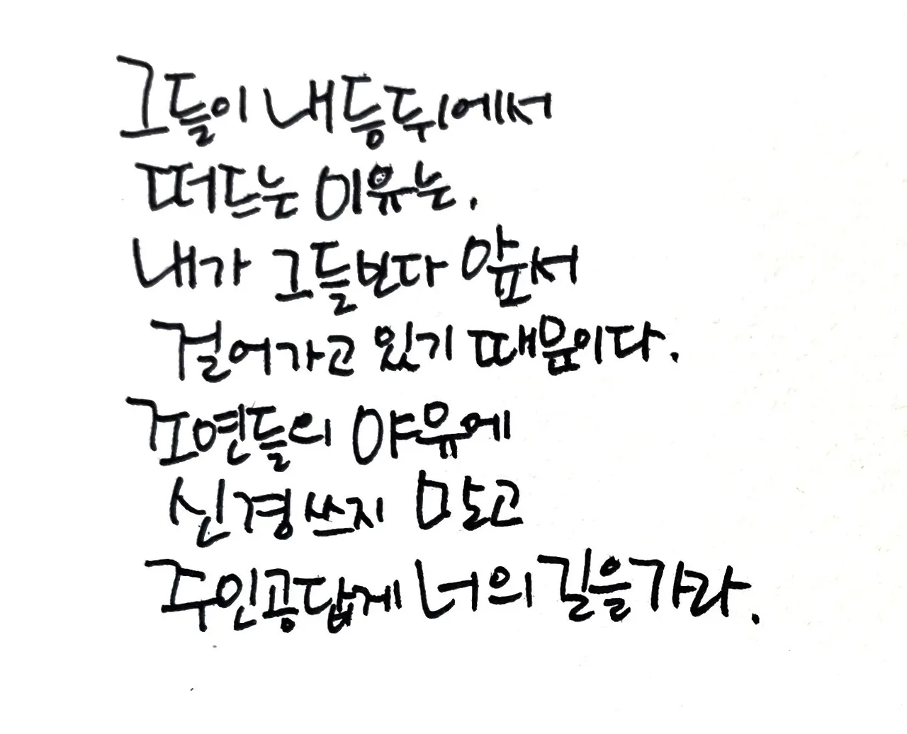 굳이 뒤를 돌아보며 그들과 눈을 맞추지 마십시오. 당신의 시선은 오직 당신의 목표를 향해야 합니다.