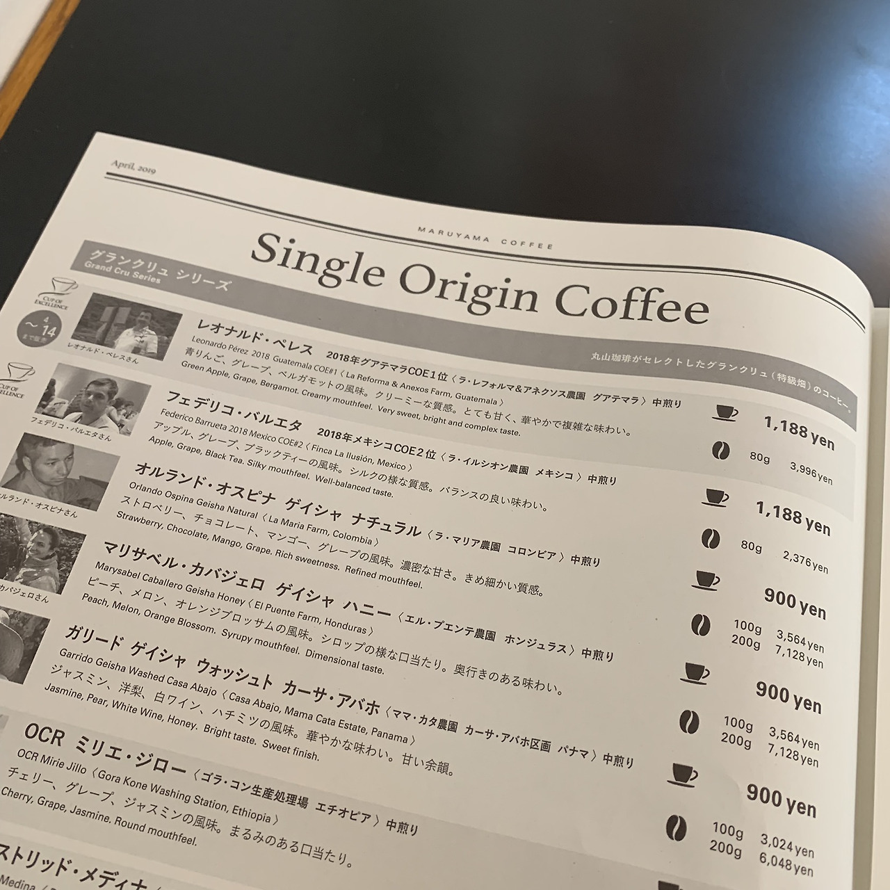 마루야마의 주문은 고객이 자리에 착석한 후에 시작됩니다. 당혹스러웠던 부분은 카페 안에 따로 메뉴가 부착되어 있지 않은 점입니다. 무엇을 시켜야 될지 모르는 와중에 바리스타가 직접 메뉴판을 들고 자리에 와서 오늘의 메뉴와 주문되지 않는 메뉴를 소개해주었습니다.