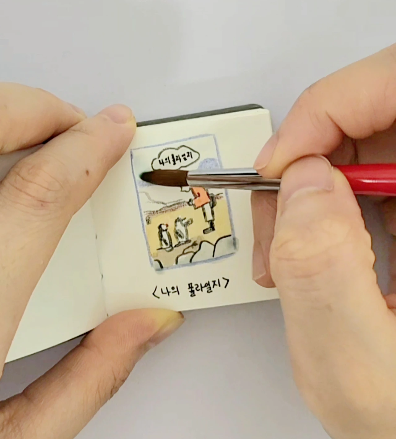 독서인의 기준이 뭘까. 읽은 책의 권수가 평균치보다 많으면 독서인이라는 타이틀을 붙여도 되는 걸까. 30대 성인 연간 종합 독서량은 3.9권이라고 한다. 그럼 나는 얼마나 읽을까. 6월부터 완독한 책을 표시해 보기로 했다. 읽은 책 표지 사진을 찍어서 소감과 함께 SNS에 올리는 분들이 많지만, 새로운 SNS 계정을 만들기 싫고 글을 쓰는 것도 부담이 되어서 그 방법은 포기하고 내가 재미있어 할 다른 방법을 찾았다. 5cm 정사각형의 작은 수채화용 노트에 읽은 책의 표지를 그려 넣고 완독한 날짜와 작가명을 적는 것이다.