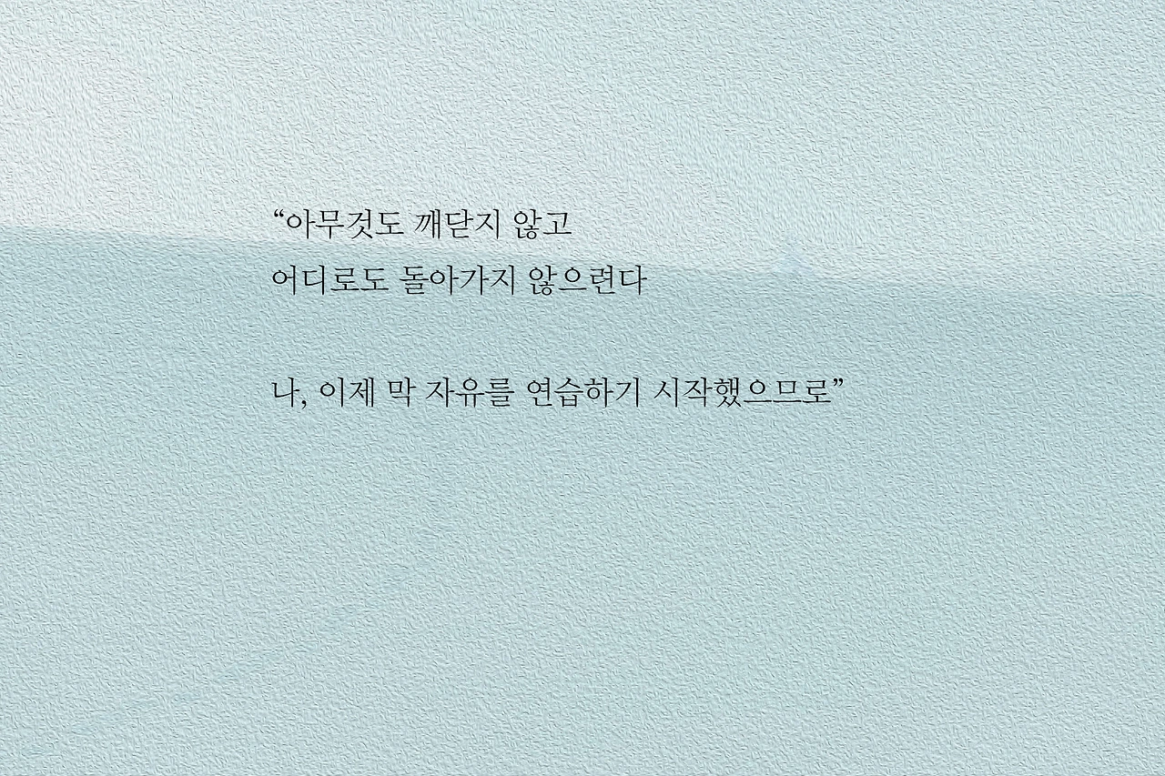 겨울을 지나도 또 겨울이 오는 계절처럼, 잊고 싶은 기억과 지우지 못한 감정 사이를 건너며 시인은 시 속에서만 몸을 녹이고 있다. 그리고 자신의 앞에 놓인 무수한 질문들을 껴안고, 결국 다시 살아내는 방법을 시에서 찾아 나선다. 하여 누군가를 기다리지 않고, 누구의 기대도 짊어지지 않은 사람이 되기까지의 여정이 시집을 가득 채우고 있는 것이다. 그 모든 견딤 끝에, ‘나, 이제 막 자유를 연습하기 시작했으므로’라는 문장에 이르는 길이 바로 이 시집을 읽는 지도라고 하겠다.