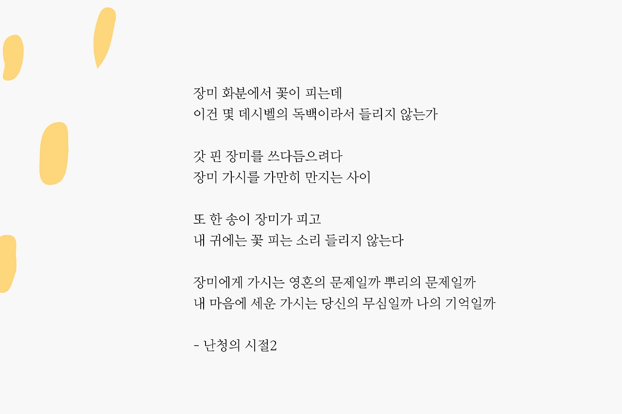 빗방울 지는 소리에 묻지 않아도 되었을까,