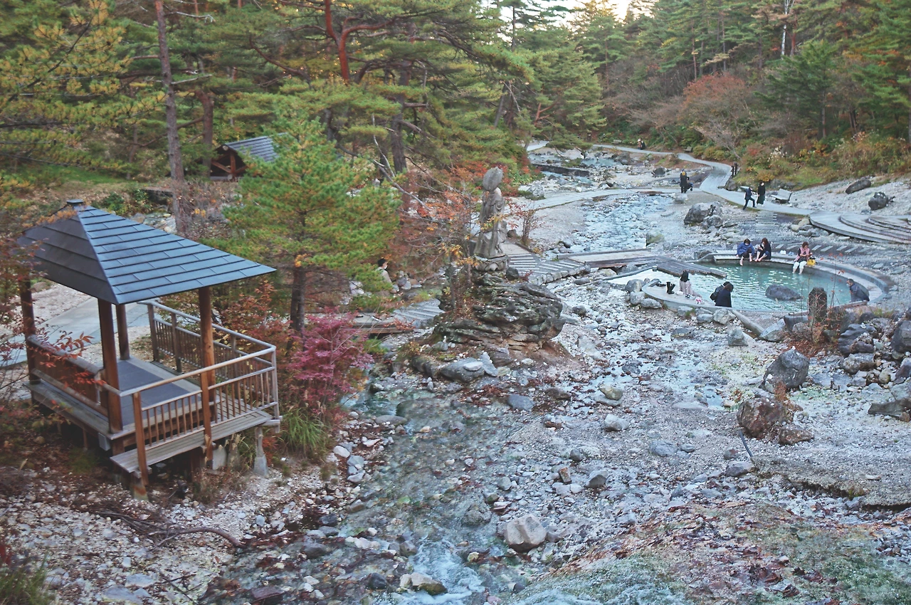 도쿄역에서 출발한 버스는 4시간 넘게 북쪽으로 달렸다. 시간이 흐를수록 삐죽삐죽 솟은 건물이 시야에서 사라지고, 높은 산봉우리들이 그 자리를 채웠다. 구사쓰 온천은 화산 활동이 활발한 산에 둘러싸인 해발 약 1,200m의 산간 마을이다. 버스는 산길을 한참 오르다 구사쓰 온천 버스 터미널에 도착했다. 여름과 가을이 줄다리기하던 도쿄와 달리 구사쓰에는 벌써 단풍이 울긋불긋했다. 고원 지대의 서늘한 공기와 대비되는 포근한 가을 빛깔을 감상하며 기분 좋게 첫 발걸음을 뗐다.