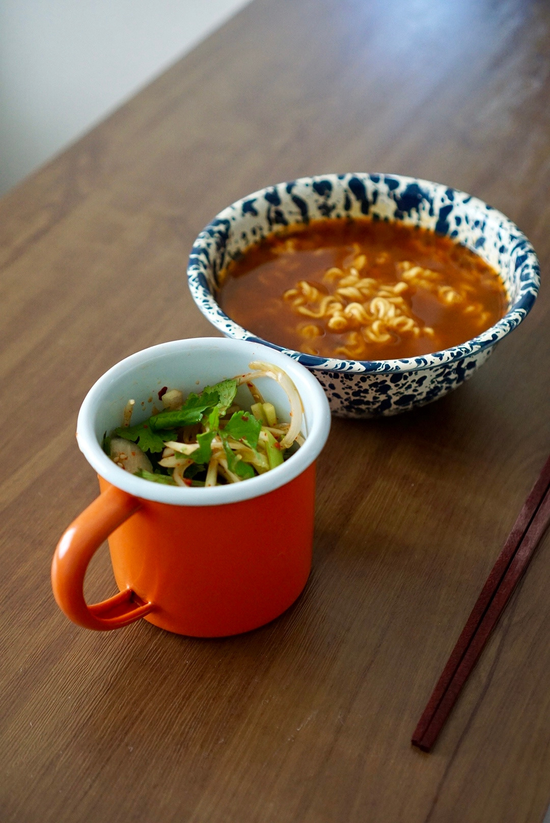 저는 고수를 그대로 요리에 올려 먹기도 하지만, 오이, 양파와 함께 가볍게 겉절이처럼 무쳐 먹기도 해요. 국수나 고기에 잘 어울리는데, 오늘은 간편하게 봉지 라면으로 할게요. 라면 레시피는 포장지 뒷면에 잘 적혀 있으니 생략합니다. 저는 삼양라면과 진라면 순한 맛을 선호하지만, 일본 마트에서 신라면을 파는 것만으로도 감사합니다.