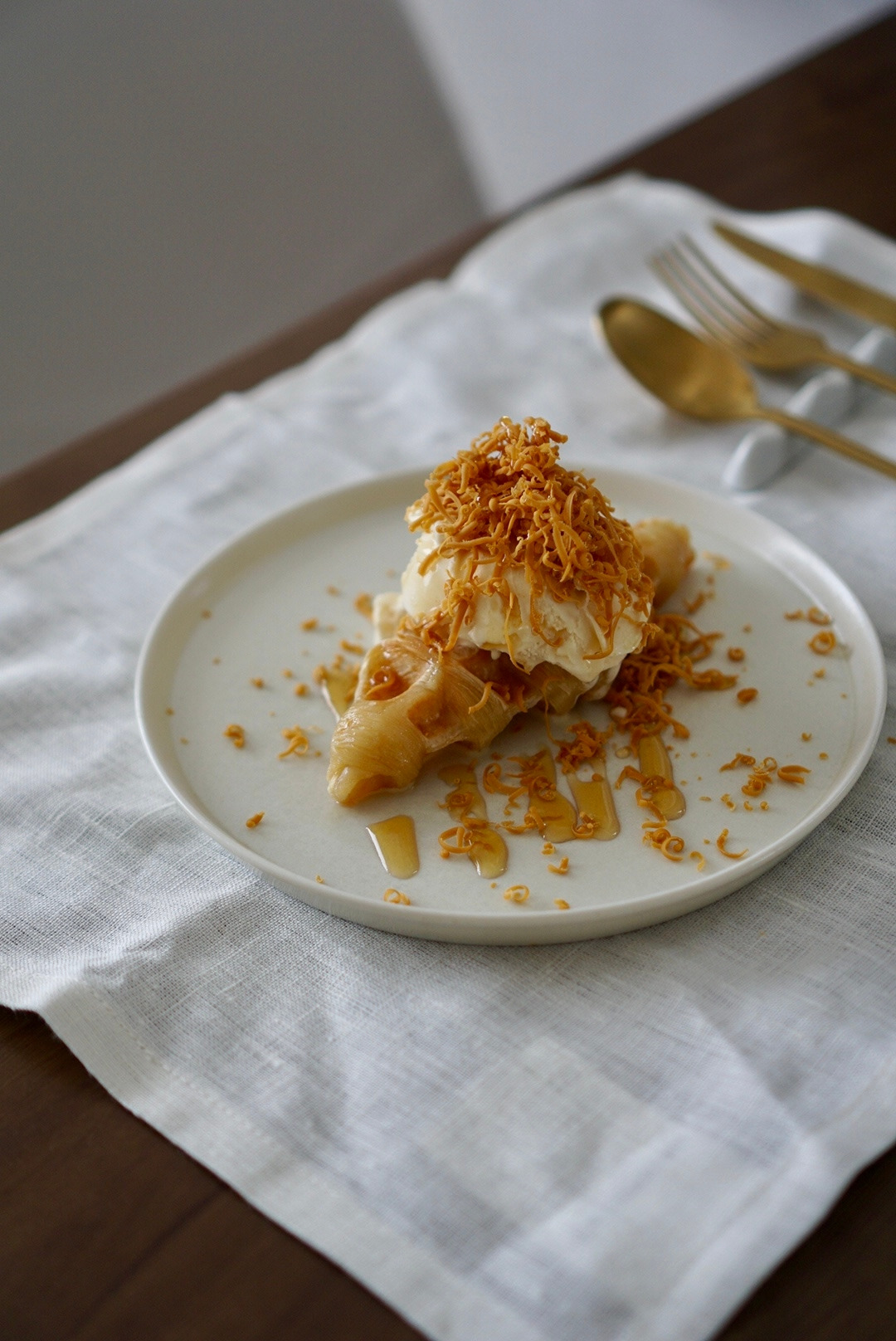 3. 아이스크림과 브라운 치즈를 취향껏 올린다.