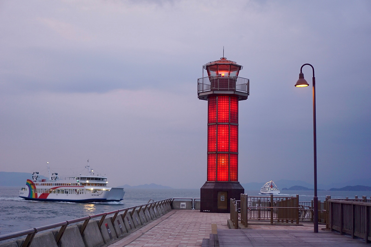 다카마쓰에 도착한 첫날밤에 찾은 유리 등대 세토시루베는 여전히 선명한 붉은빛을 자랑했다. 날씨가 흐렸던 탓인지 예전처럼 사진 찍는 사람들은 만날 수 없었지만, 하루를 마무리하며 등대 주변에서 산책과 조깅, 낚시를 즐기는 일상적인 풍경에 잊고 있던 그리움이 몰려왔다.