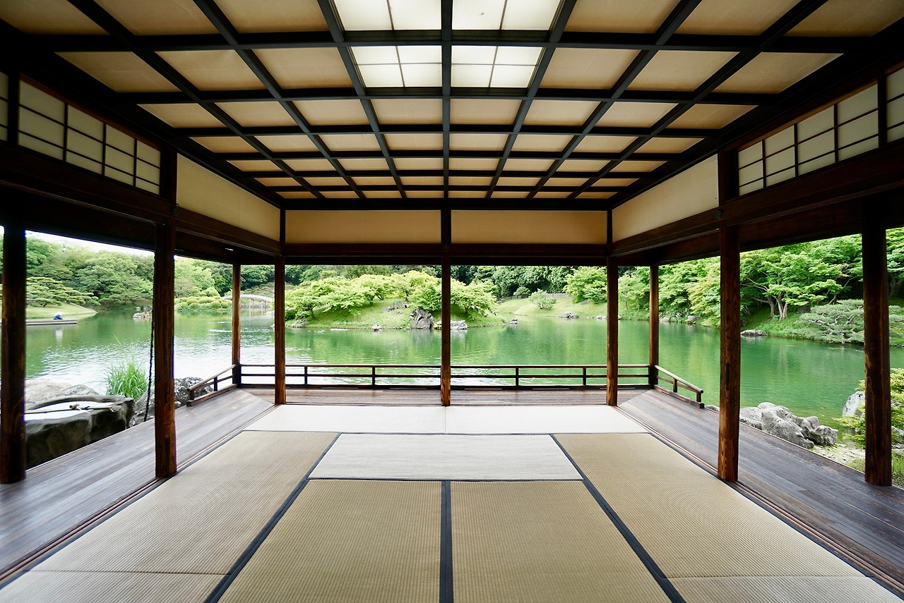 리쓰린 공원을 거닌 둘째 날 아침에는 예정에 없던 소나기를 만났지만, 울창한 나무가 제법 듬직한 우산이 되어 주었다. 다실인 기쿠게쓰테이에서 빗소리를 배경 음악 삼아 말차를 들이켤 때는 세상 시름이 모두 잊히는 기분이었다. 방 안에 작은 새가 들어와 좀처럼 출구를 찾지 못하자 기모노를 입은 직원들이 가여워하며 창문이란 창문은 다 여느라 소란스러웠던 기억도 정겹게 남아 있다.