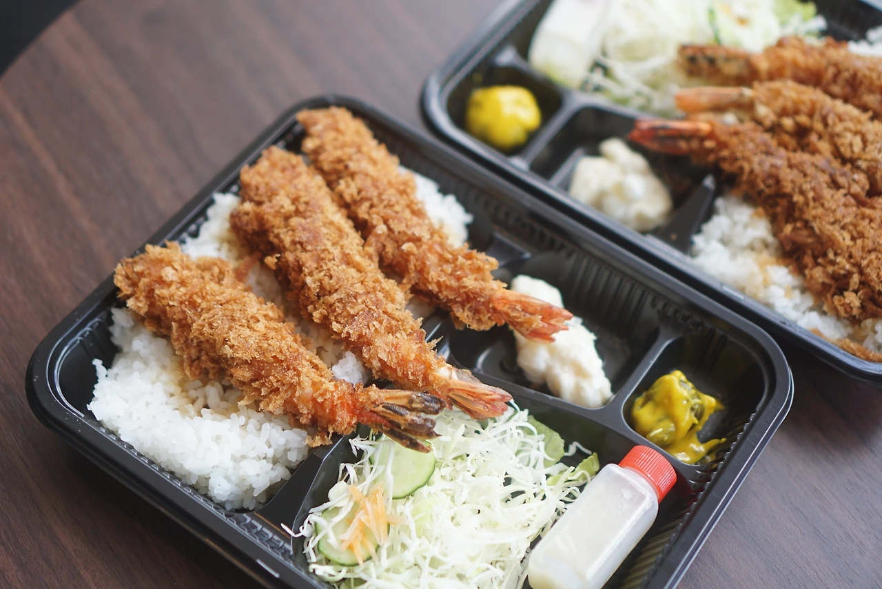 "새우도 크고 소스는 맛있는데, 도시락은 어쩔 수 없이 눅눅하대. 그런데 더 괜찮아 보이는 다른 식당은 예약이 안 돼서 시간이 빠듯할 수 있어."