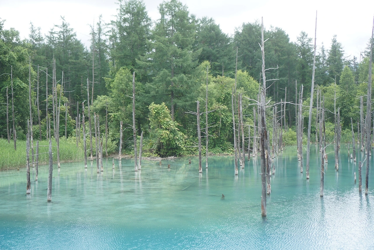 패치워크 로드를 통과해 처음으로 발을 땅에 딛고 관람한 곳은 청의 호수. (선생님께서는 의미상 호수보다는 연못에 가깝다고 강조하셨다) 특유의 비현실적인 푸른색은 자연과 인간의 우연한 조화로 생겨났다. 1988년 화산에서 흐르는 진흙을 막으려 댐을 건설했는데, 인근 온천의 알루미늄 성분이 호수로 흘러 들어와 푸른빛을 반사하게 되었고, 바닥에 가라앉은 황과 석회가 그 색을 더욱 선명하게 보이도록 만든 것이다. (나를 포함한) 인파로 인해 그 청연한 아름다움을 차분히 감상하기는 어려웠지만, 싱그러운 풍경을 배경으로 S가 찍어 준 사진은 나의 새 프로필 사진이 되었다.