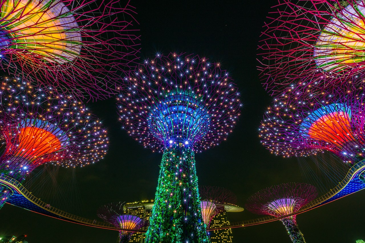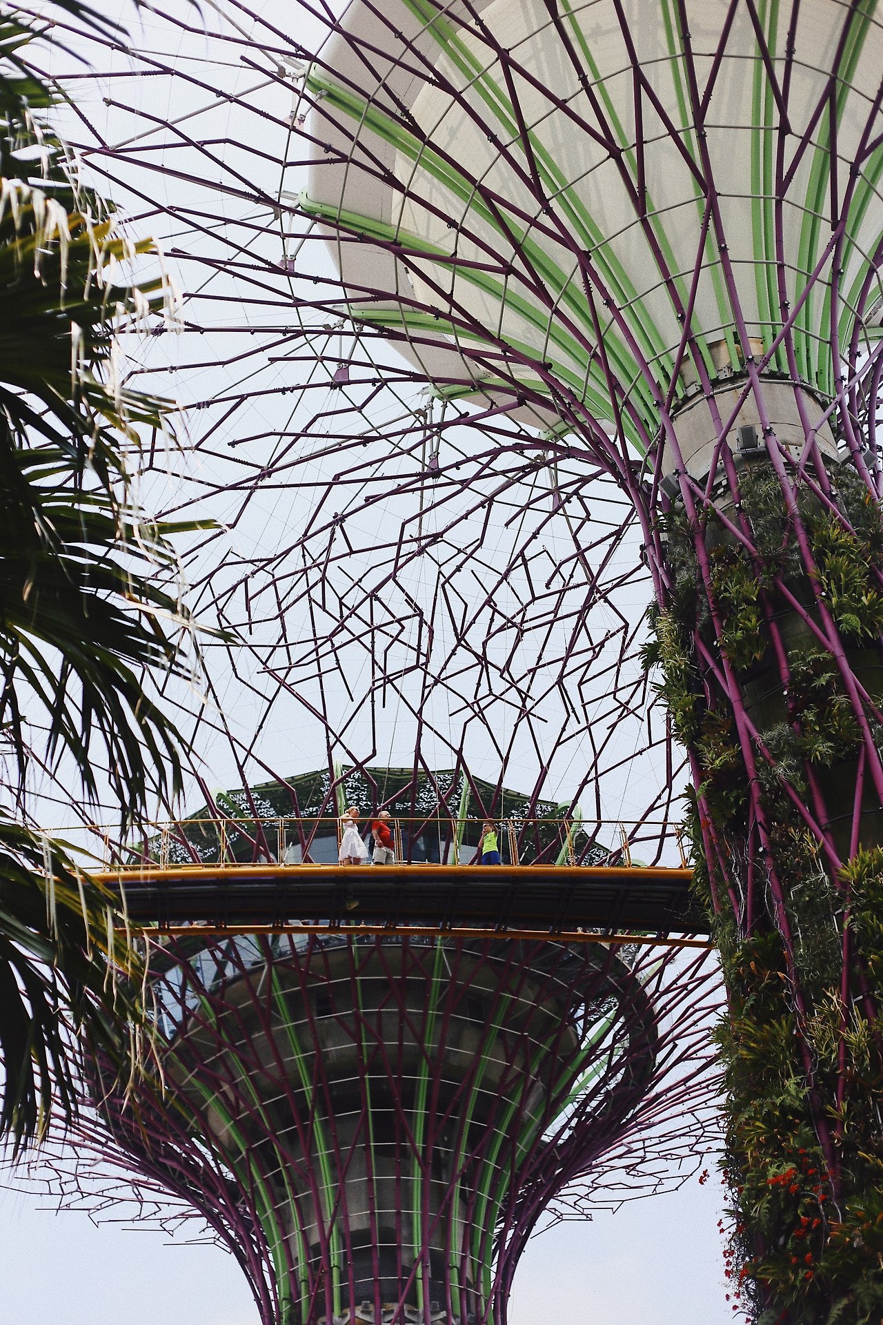 가든스 바이 더 베이에서의 하루는 늘 슈퍼트리 그로브에서 마무리하곤 했다. 야외 정원 곳곳에서 발견할 수 있는 총 18채의 슈퍼트리는 700여 종의 희귀 식물 서식지이며, 가장 높은 것은 16층짜리 빌딩과 맞먹는다. 비록 콘크리트와 철로 이루어져 있지만, 살아있는 생물처럼 태양열을 흡수해서 에너지로 쓰고, 물을 순환시키며, 뜨거운 공기를 배출한다. 햇빛과 물을 마시고, 공기를 정화시키는 실제 나무의 역할과 다르지 않아 보인다. 낮에는 캐노피를 통해 그늘을 제공하고, 매일 7시 45분과 8시 45분에 야간 조명 쇼를 선보여 사람들을 즐겁게 하는 것도 인공 나무의 몫이다.