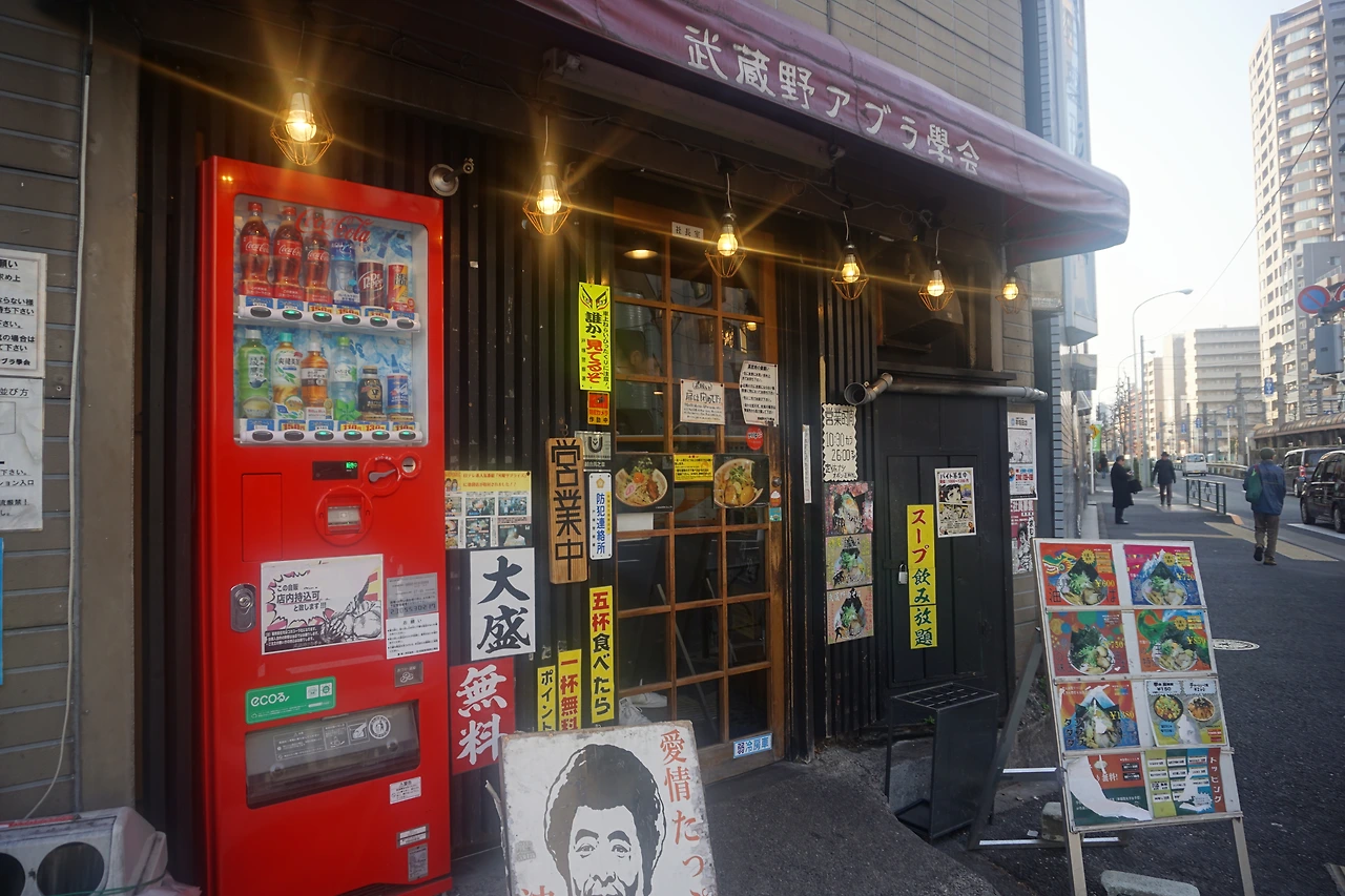 와세다 대학생이 점심시간만 되면 줄 서서 먹는 아부라 소바 맛집. 아부라 소바는 라멘의 한 종류인데, 국물 없이 기름 소스에 비벼먹는 것이 특징이다. 언뜻 보기에는 무거울 것 같지만 일반 라멘에 비해 나트륨 함량과 칼로리가 적어 건강함을 내세운다. 직원의 안내에 따라 먼저 자동판매기에서 식권을 구입한 후 줄을 서서 기다리면 된다. 가장 기본 메뉴인 600엔짜리 아부라 소바에 맛 계란을 추가할 것을 추천한다. 테이블 위의 식초와 라유를 한두 바퀴 뿌리면 더욱 새콤하고 매콤해진다.