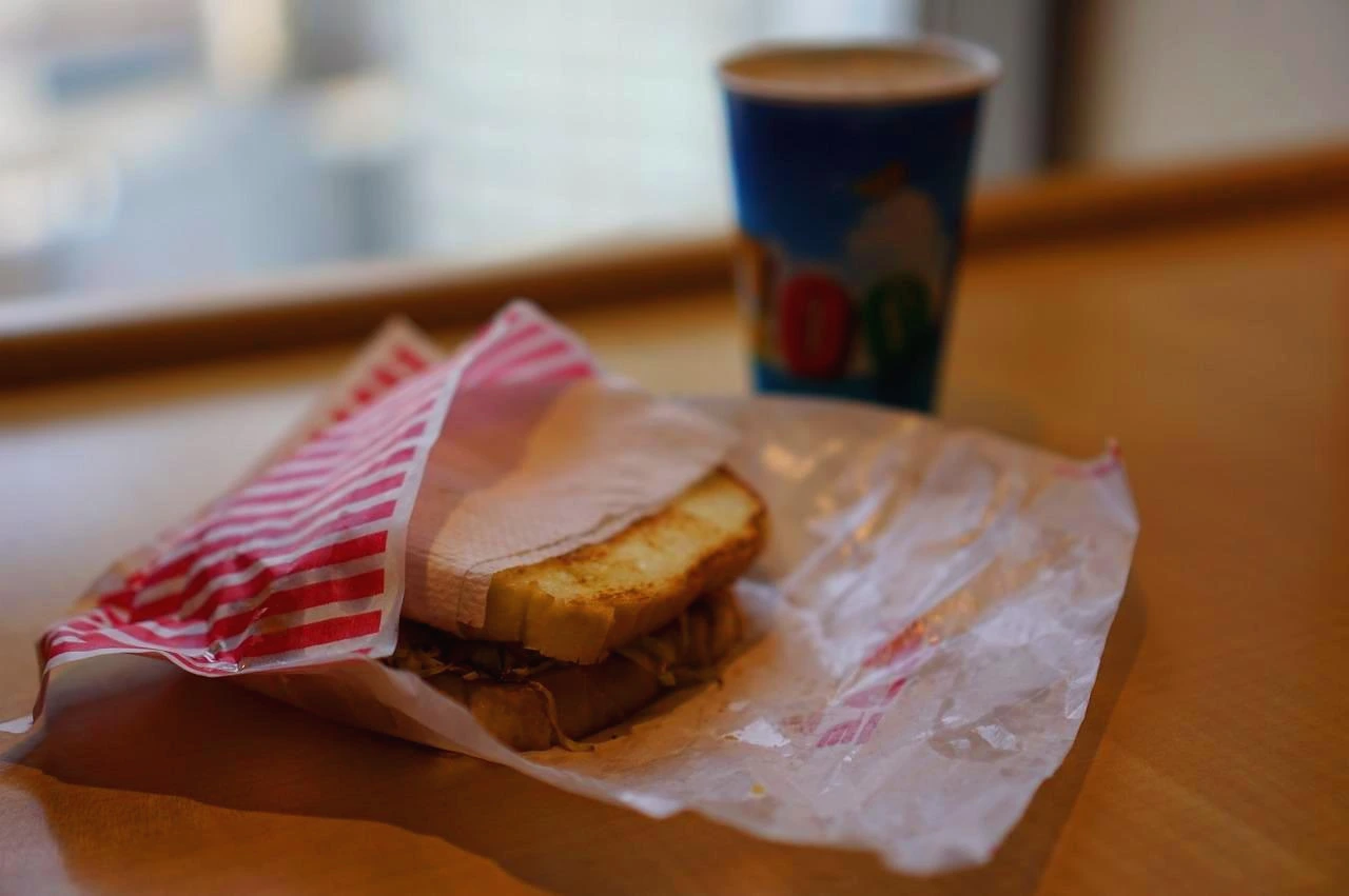 포장마차에서 파는 한국식 토스트 또한 해외에서 쉽게 먹을 수 없는 명물 요리다. 갖가지 야치를 넣은 달걀부침과 식빵을 철판에 노릇노릇 굽고, 얇게 썬 양배추와 슬라이스 치즈를 올린 뒤, 마요네즈 베이스의 특제 드레싱을 두르고, 설탕을 솔솔 뿌리면 완성되는 영양 만점 간식. 포장마차 사장님께서는 '우리 집은 설탕을 많이 안 쓰고 드레싱을 듬뿍 넣는다'라며 자부심 섞인 한 마디를 덧붙이셨는데, 정말이지 고소하고 달짝지근한 맛이 일품이었다.