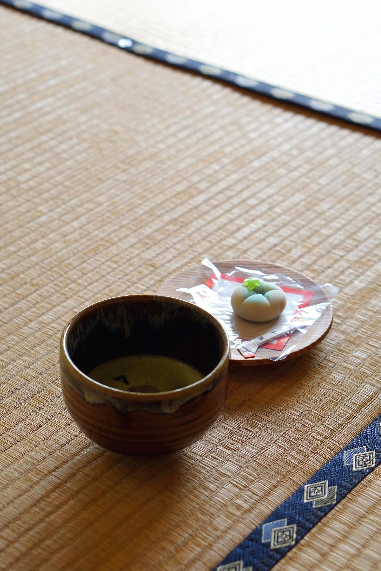 오케도이노타키에서 동쪽으로 조금 내려오면 리쓰린공원에서 가장 인기 있는 다실 기쿠게쓰테이(掬月亭)가 나온다. 직사각형 다다미 마루와 미닫이식 문이 규칙적으로 늘어서 있어 정갈하고 고요한 운치가 감돈다. 입구에서 차를 주문해야 들어갈 수 있는데, 녹차 가루를 저어 만든 맛차(抹茶)와 잎으로 우린 센차(煎茶) 중에 선택할 수 있다. 센차는 우리나라에서도 흔히 마시는 녹차와 비슷하기에, 표면에 촉촉한 거품이 일고 떫은맛이 덜한 맛차를 추천하고 싶다. 차에는 곁들여 먹을 만주나 화과자도 나온다. 씁쓸한 한 모금에 달콤한 한 입을 번갈아 즐기다 보면, 이곳에서 차를 맛있게 마시려고 리쓰린공원을 걸은 것이 아닐까 하는 생각이 든다.