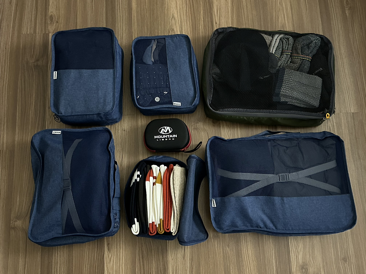 짐이 가득하지만, 잃어버려도 무방한 것들로 챙겼다.(사실 무방하지 않습니다.^^제발 무사하게 해 주세요.) 왼쪽은 전부 의류, 오른쪽은 생활하면서 필요한 잡화류다. 나는 이렇게 여행 파우치에 종류별로 수납하는 것을 좋아한다. 고백하자면 지구의 모든 사람들이 나처럼 짐을 싸는 줄 알았는데, 친구들과 여행을 다녀오고 수영복은 대체로 있는 대로 전부 다 챙겨야 한다는 것과, 저런 파우치 없이도 짐을 쌀 수 있다는 사실 등 새로운 것들을 많이 깨닫고 왔다. 하지만 나는 그럴 수 없어요... 기본적으로 정리정돈에 중독된 사람이다. 각을 맞출 때 희열을 느끼기 때문에 그 재미를 도저히 포기할 수 없다.