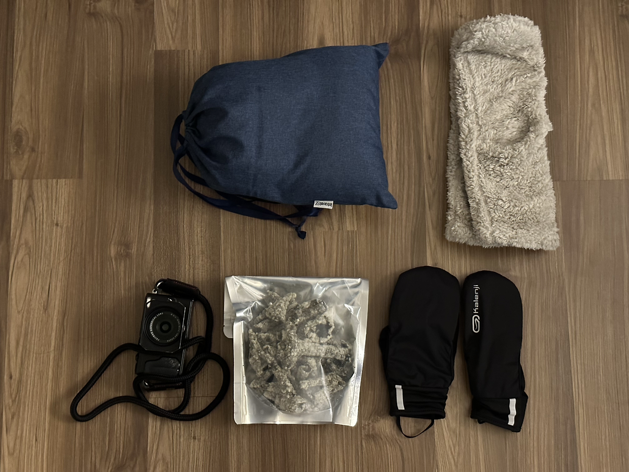 신체의 말단을 보존할 모자와 장갑도 추운 지역 여행 시 필수적이다. 내 짐들을 보면 느껴지듯, 검은색이 주를 이루고 있어서 예쁘기가 어렵다. (원래 여행 중 예쁘게 입을 생각이 없는 편임) 그래도 귀엽게 입고 여행해야 여행도 귀여워지지 않을까. 귀여움은 모든 잡화류에서 표현하기로 했다. 옷은 독일 사람처럼 검고 칙칙하더라도, 모자와 장갑은 귀엽게. 그래서 가볍고 자리 차지하지 않는 녀석들이라 넉넉하게 챙겼다. 매일 같은 옷을 입는다는 것을 숨기기 위해 주는 작은 변주.