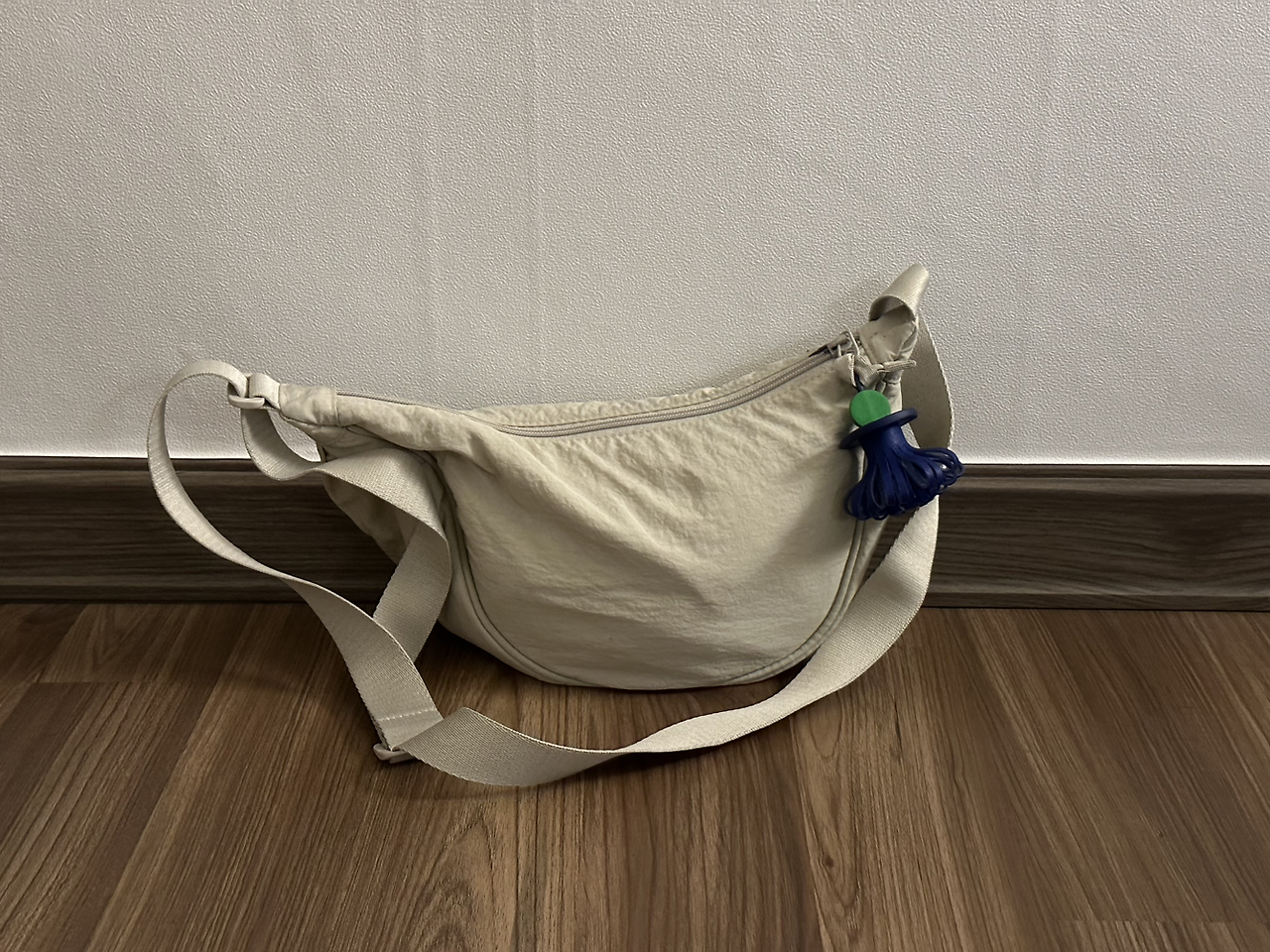 보조가방. 이 또한 유니클로에서 구매했다. 정말 가볍고 많이 들어간다. 친구가 행운을 빌며 선물해준 귀여운 키링을 달았다. 덕분에 투박하고 평범했던 가방이 몹시 사랑스러운 모양이 되었다.