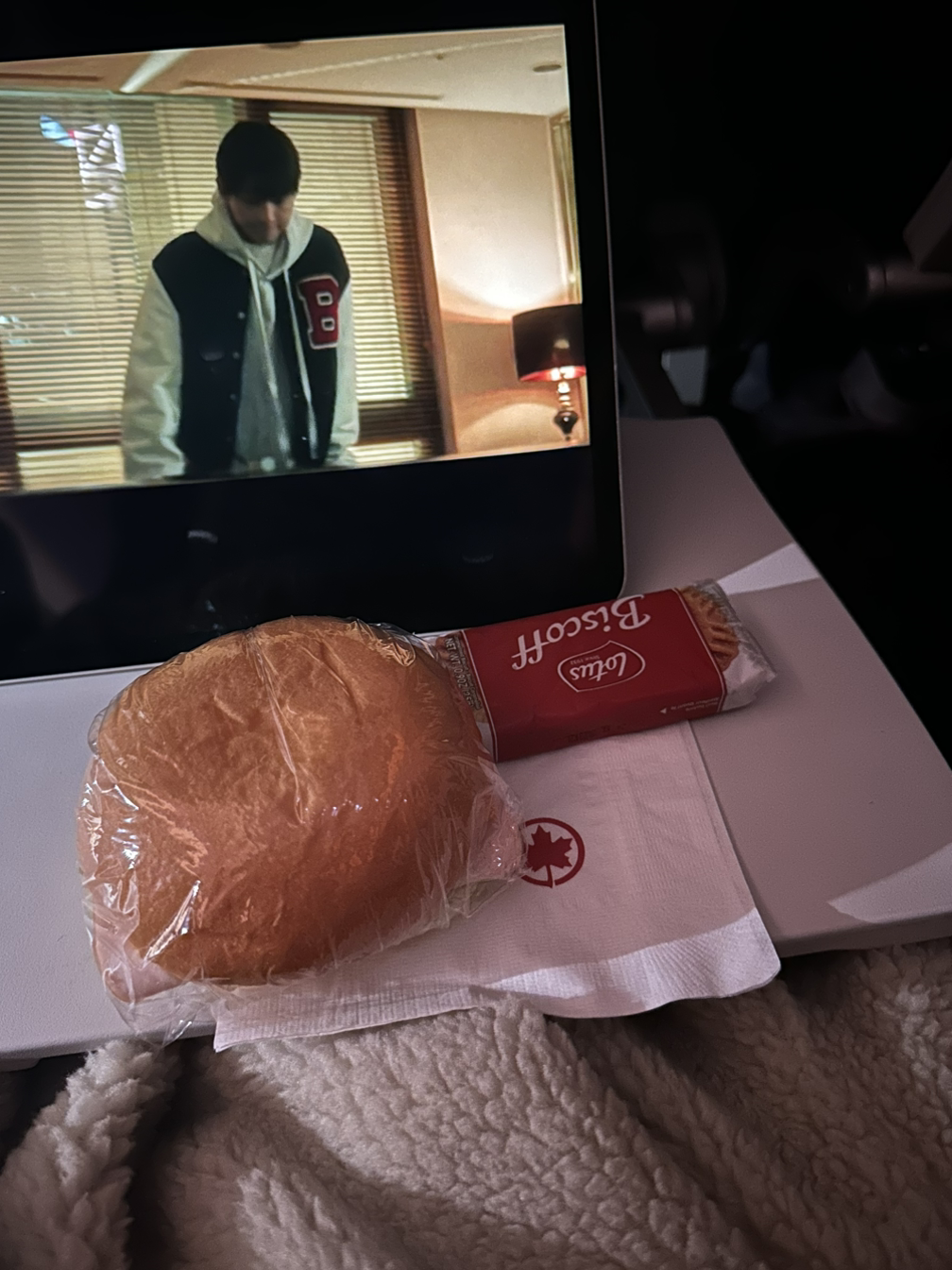 에어캐나다의 첫 번째 기내식. 포크 어쩌고저쩌고. 포크냐 비프냐... 하는 질문만 듣고 포크(돼지고기)를 달라고 했다. 연근과 알 수 없는 모닝빵의 조화... 과수는 기내식을 곧잘 먹는다고 했다. 그 말을 증명하듯 정말로 맛있게 잘 먹어버림. 하지만 나는 기내식을 맛있게 먹지 못하는 사람이다. 하늘에서 만든 지상 음식 흉내 같은 느낌이랄까. 일본은 도시락을 잘 만드는 나라니까 기내식도 다르려나? 문득 궁금하다. 하여튼 이번 식사 대부분을 남겼다.