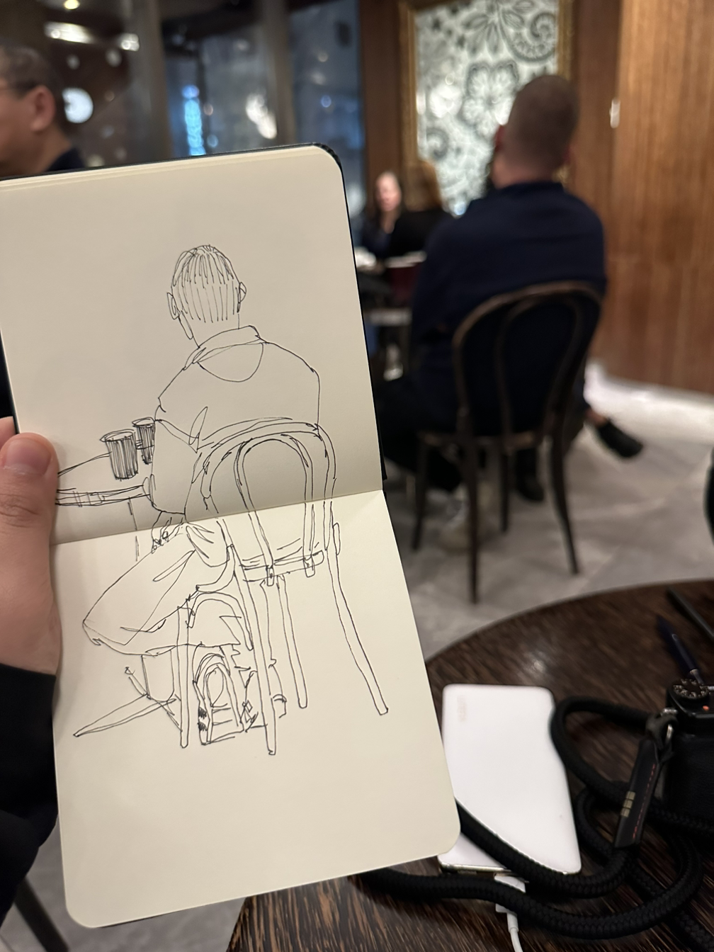 앞사람을 그려보기도 하고. 즐거운 낙서를 몇 개 남겼다. 기차에서 가볍게 채색해봐도 좋겠다.