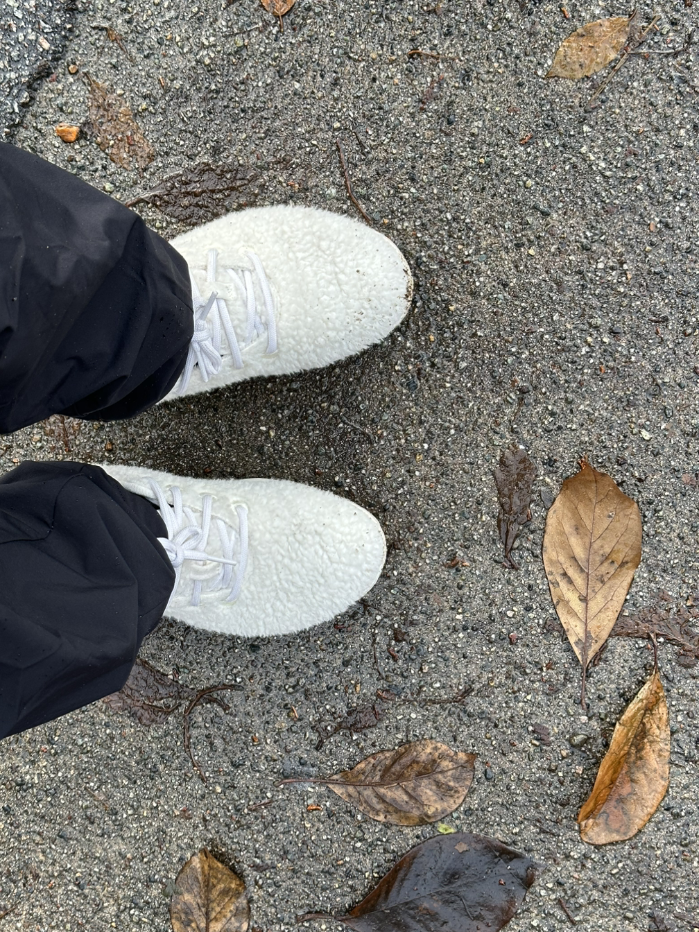 걷다 보니 나의 귀여운 신발에 흙이 묻었다. 조금 슬펐지만 괜찮기도 했다. 어딘가 열심히 모험했다는 뜻이니까. 젖은 낙엽에 눈에 띈다. 캐나다 국기에 있는 단풍은 보이지 않았다.