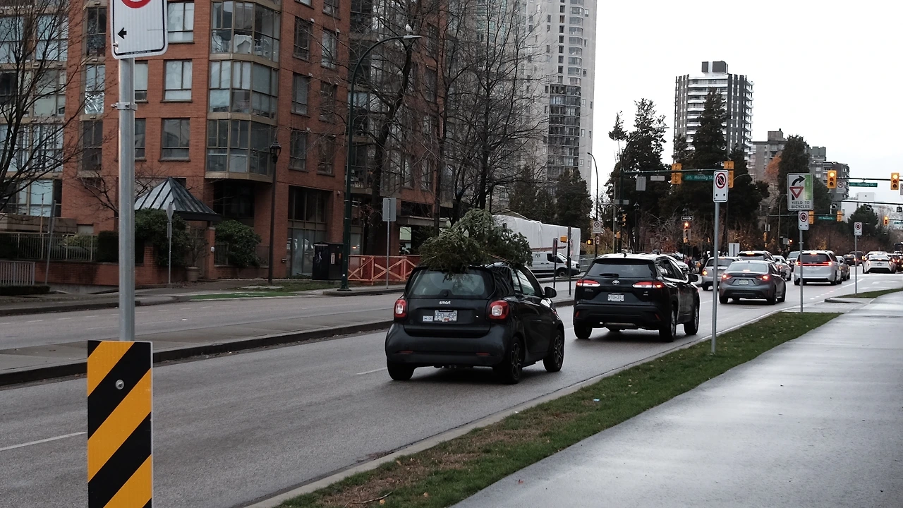 잘 보면 차 위에 트리를 싣고 가는 게 보인다. 귀여운 장면이었다.