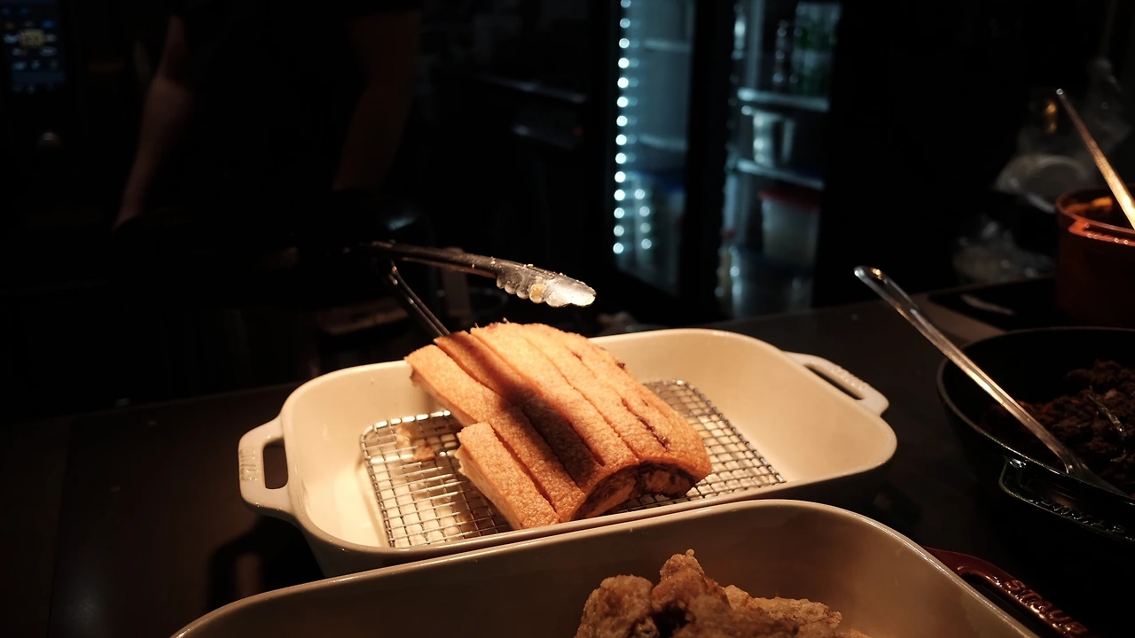 유난히 눈에 띄었던 크리스피 포크. 육식맨 유튜브 영상에서 봤던 건데 시장에 있어서 기뻤다. 태국 음식이라고 한다. 저녁으로 먹기 위해 간단히 포장했다. 값이 저렴하진 않았지만 양이 많았다. 가게 주인은 포장을 해주며 ‘무척 맛있다. 왜냐하면 내가 만들었으니까. 내가 정말 좋아하는 것이다.’라고 말하는데 그 말이 어찌나 귀여웠는지. 그걸 당당하게 말한 것이 아니라, 조금 수줍게 말했다. 그리고 생김새도 뭔가 맛잘알같이 생겼음. 믿고 구매했다.