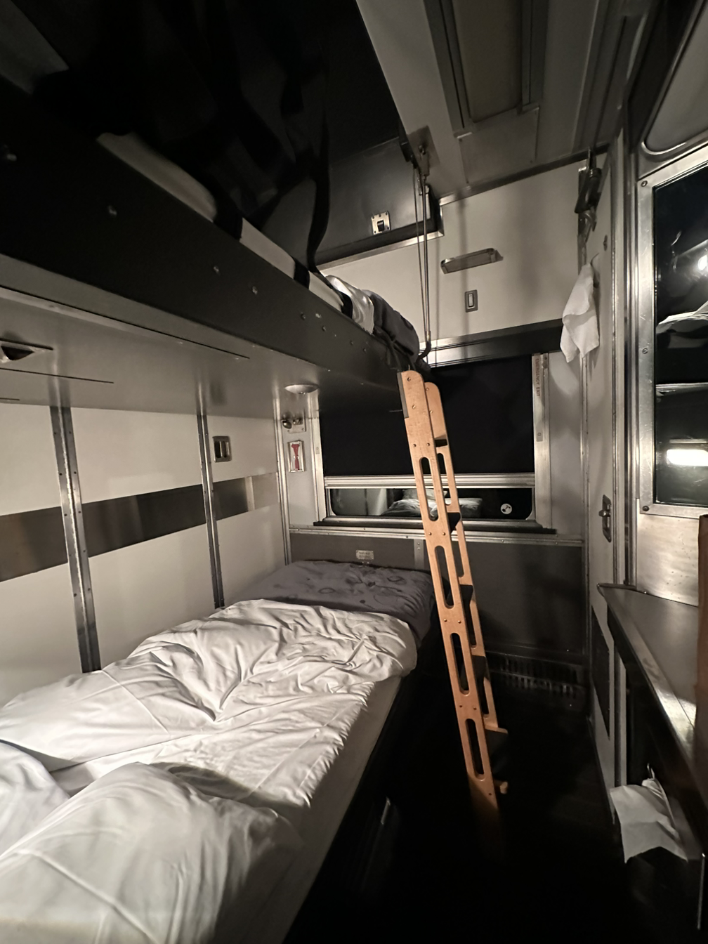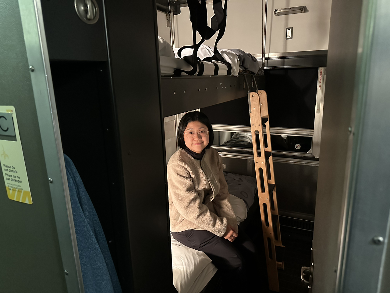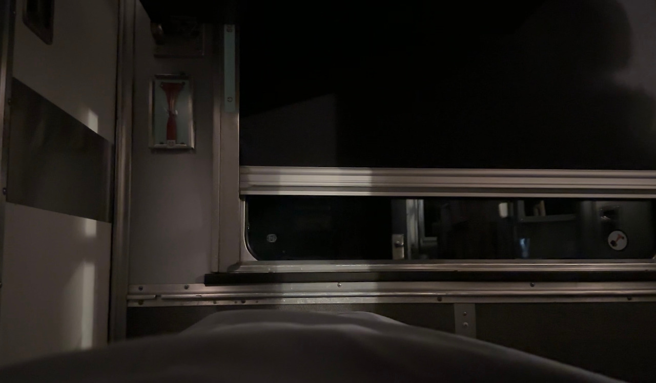식사를 마치고 돌아오니 좌석이 침대로 세팅되어 있었다. 직방 사진처럼 초광각 화면으로 찍어봄. 생각보다 침대가 정말 편하고, 이불은 부드럽다. 참고로 VIA rail은 흔들림이 정말 적은 편이다. 내가 이렇게 글씨를 적을 수 있을 정도.