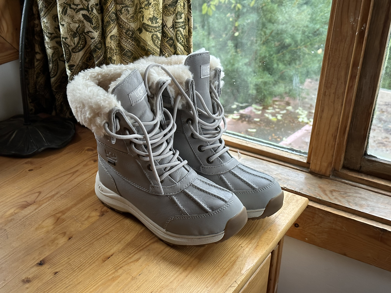 어제 산 스노우부츠를 꺼내본다. 브라운과 검정이 있었지만 나는 그레이가 제일 마음에 들었다. 신발은 전체적으로 양가죽 소재이고, 내피는 양털이다. 발끝까지 톡톡하게 내피가 잘 들어가 있다. 부츠가 너무 높지 않다는 점도 좋았다. 원할 경우 접힌 면을 펼쳐서 더 길게 신을 수도 있다.