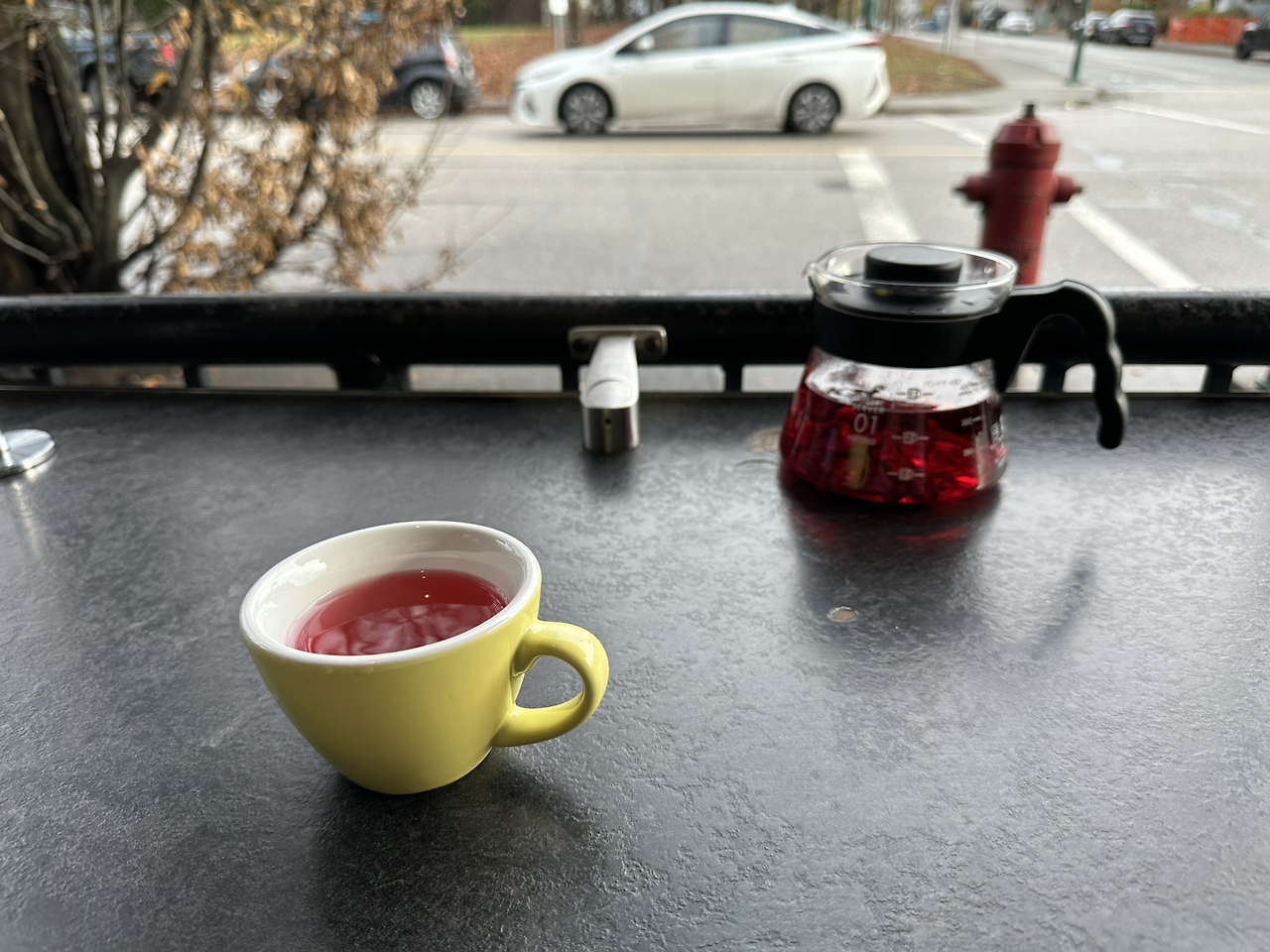여성에게 특히 좋다는 히비스커스. 밖이 추워서 차를 컵에 덜어놓으면 금방 마시기 좋은 온도가 되어 그 점은 편리했다.