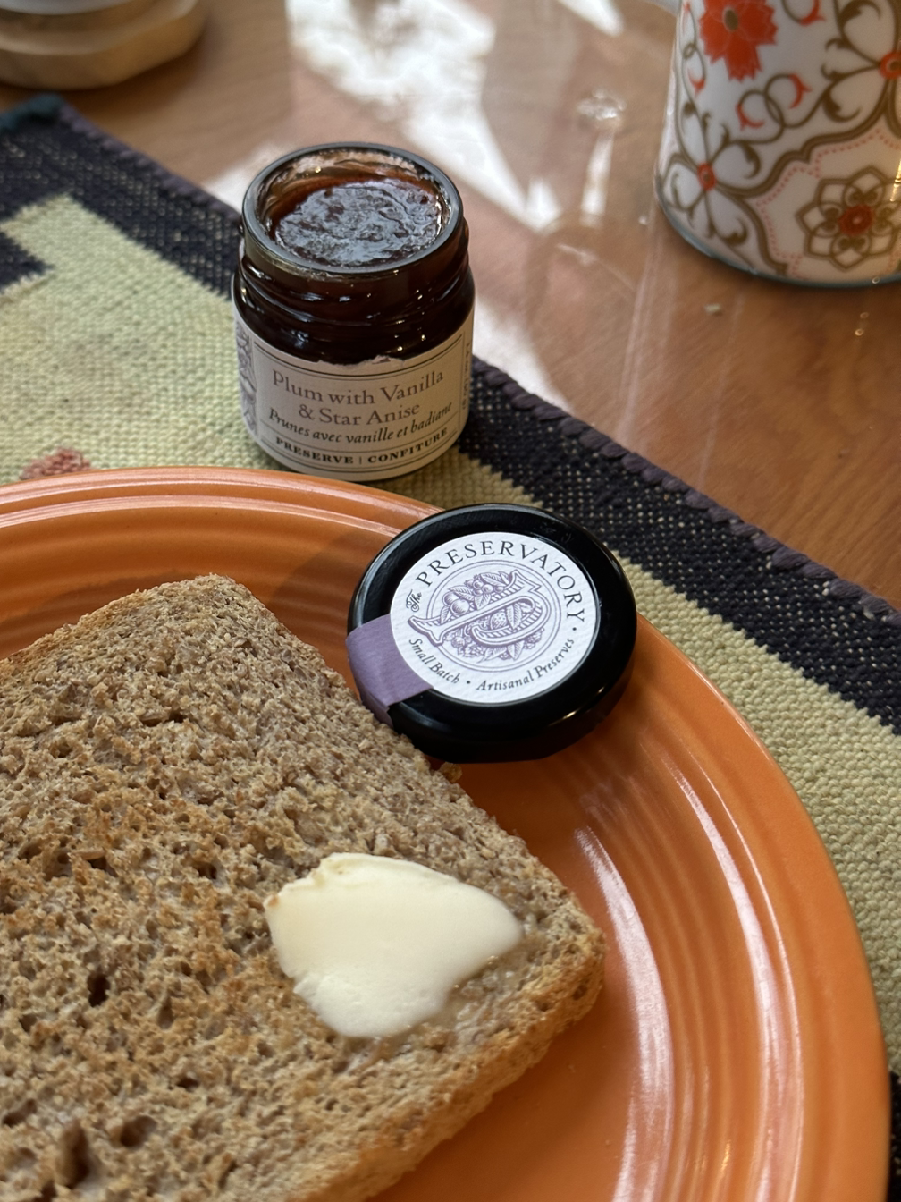 시장에서 사 온 작은 잼도 꺼내어본다. 바닐라가 들어간 자두맛 잼. 고급스러운 단맛이었다. 버터와 몹시 잘 어울렸다. 오늘은 특별히 차이 티를 마셨는데, 여행지에서 맡을 법한 향이 나서 좋았다.