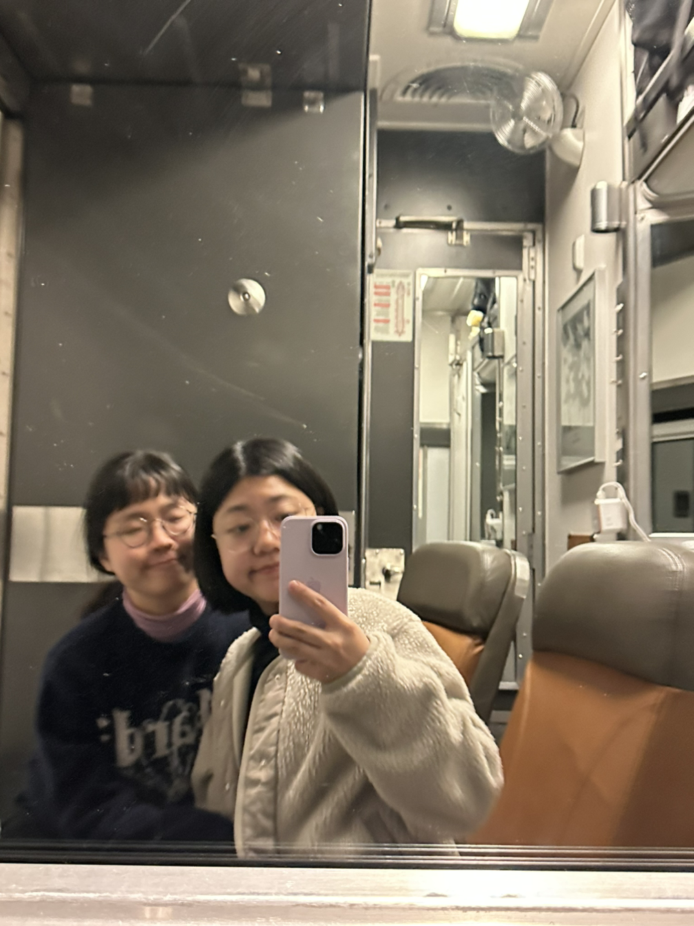 기차 내부는 사진보다는 동영상이 훨씬 잘 나와서 영상으로 기록해두었다. 위치를 자유롭게 움직일 수 있는 의자 두 개가 있고, 풍경을 볼 수 있게 큰 통창이 있다.