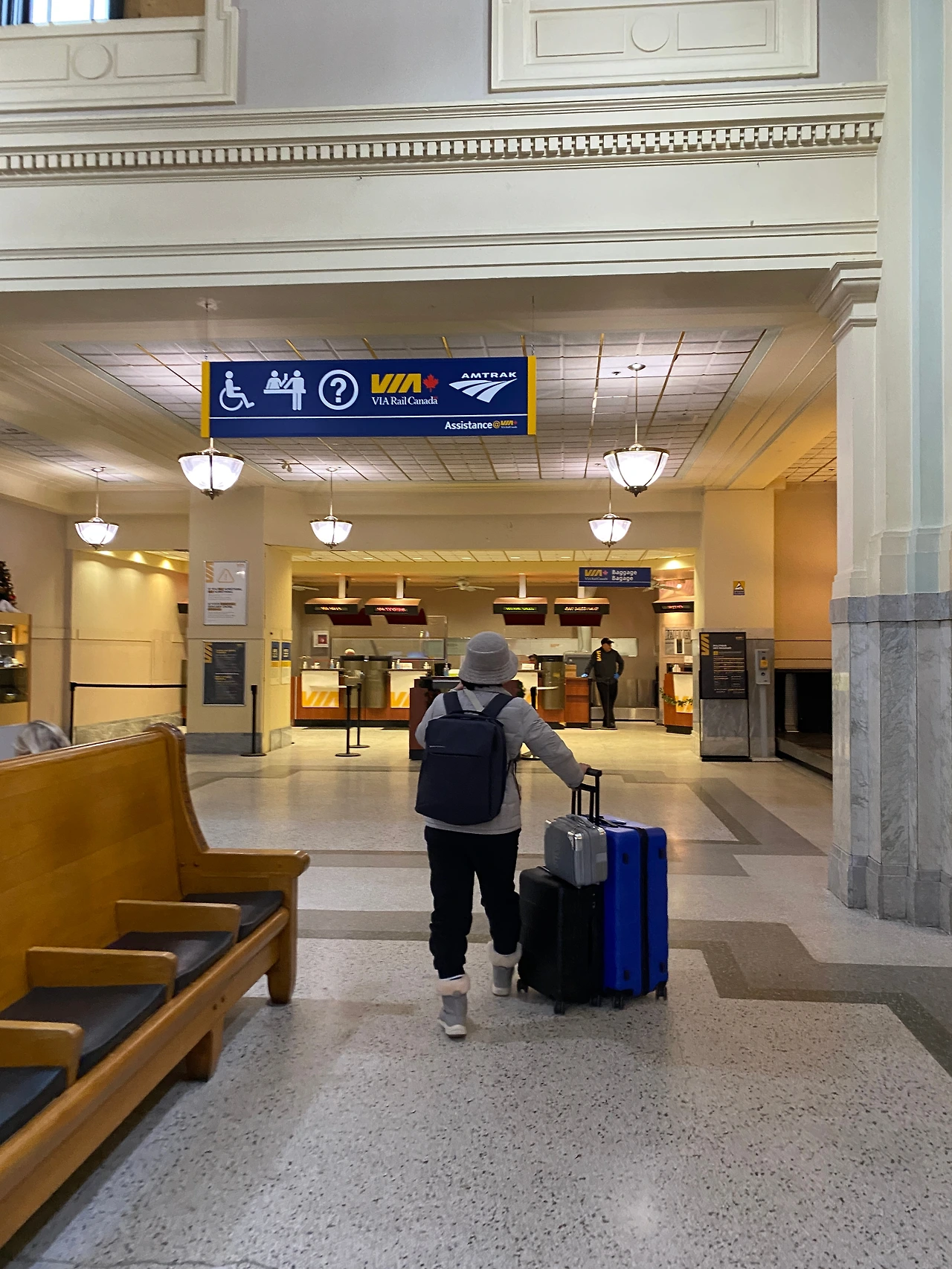 VIA rail은 캐나다 대륙을 잇는 긴 횡단 열차다. 밴쿠버에서 토론토까지 가면 4박 5일이 걸린다고 한다. 우리는 재스퍼에서 내리고, 1박 2일 동안 기차를 탄다. 장기 탑승이라는 점이 비행기 시스템과 비슷해서 미리 체크인과 수화물 처리를 해야 한다. 큰 캐리어만 덜어내도 훨씬 낫다. 무게를 쟀는데 44 킬로그램 나옴... 왜죠?