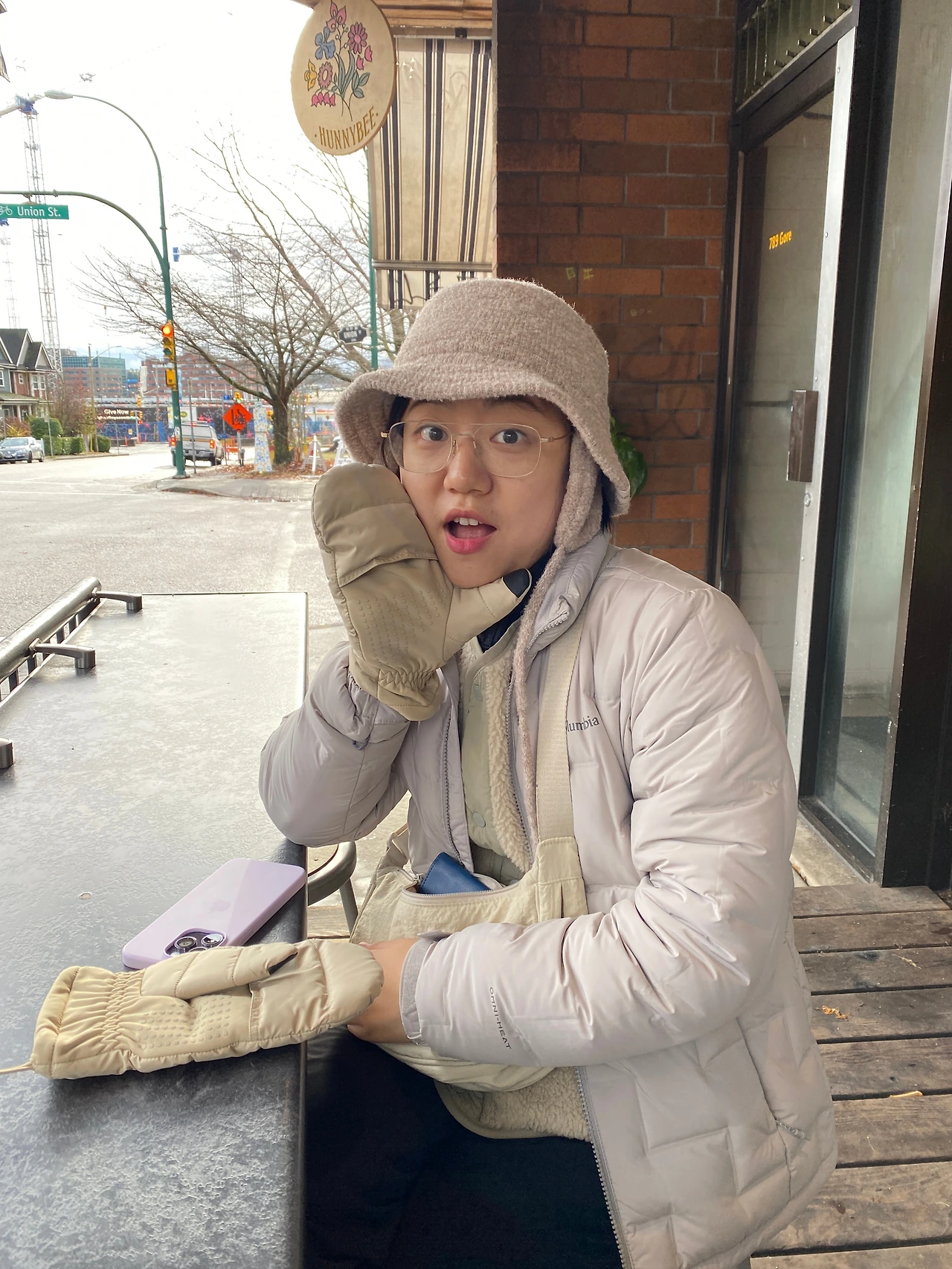 오늘의 룩. 기차를 타고 재스퍼에서 내렸을 시 충분히 따뜻하기 위한 패션. 11월 일본 여행에서 사 온 귀여운 털모자를 썼다. 12만 원이나 주고 산 모자였는데 여기 물가를 보니 잘 사 온 것 같고.