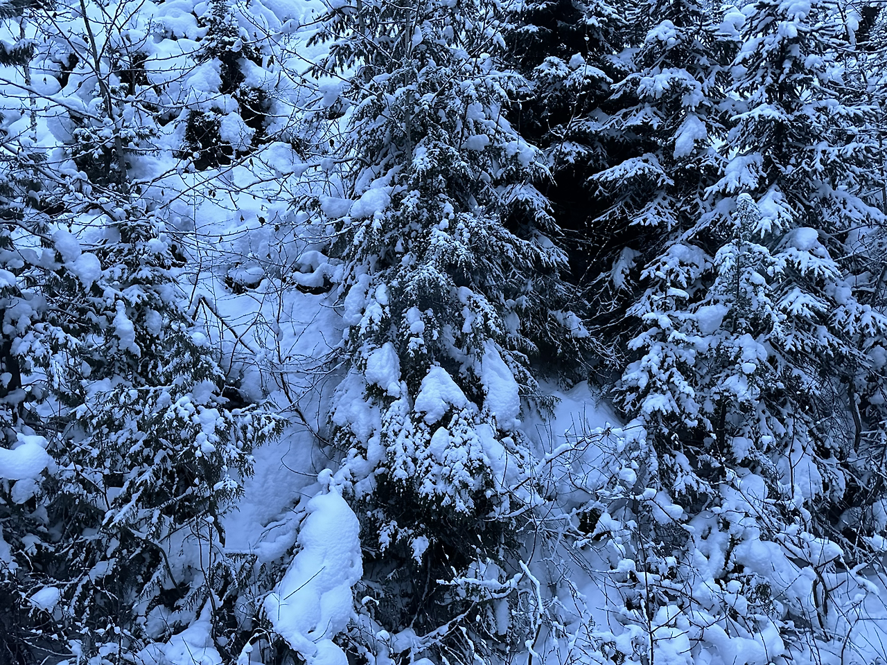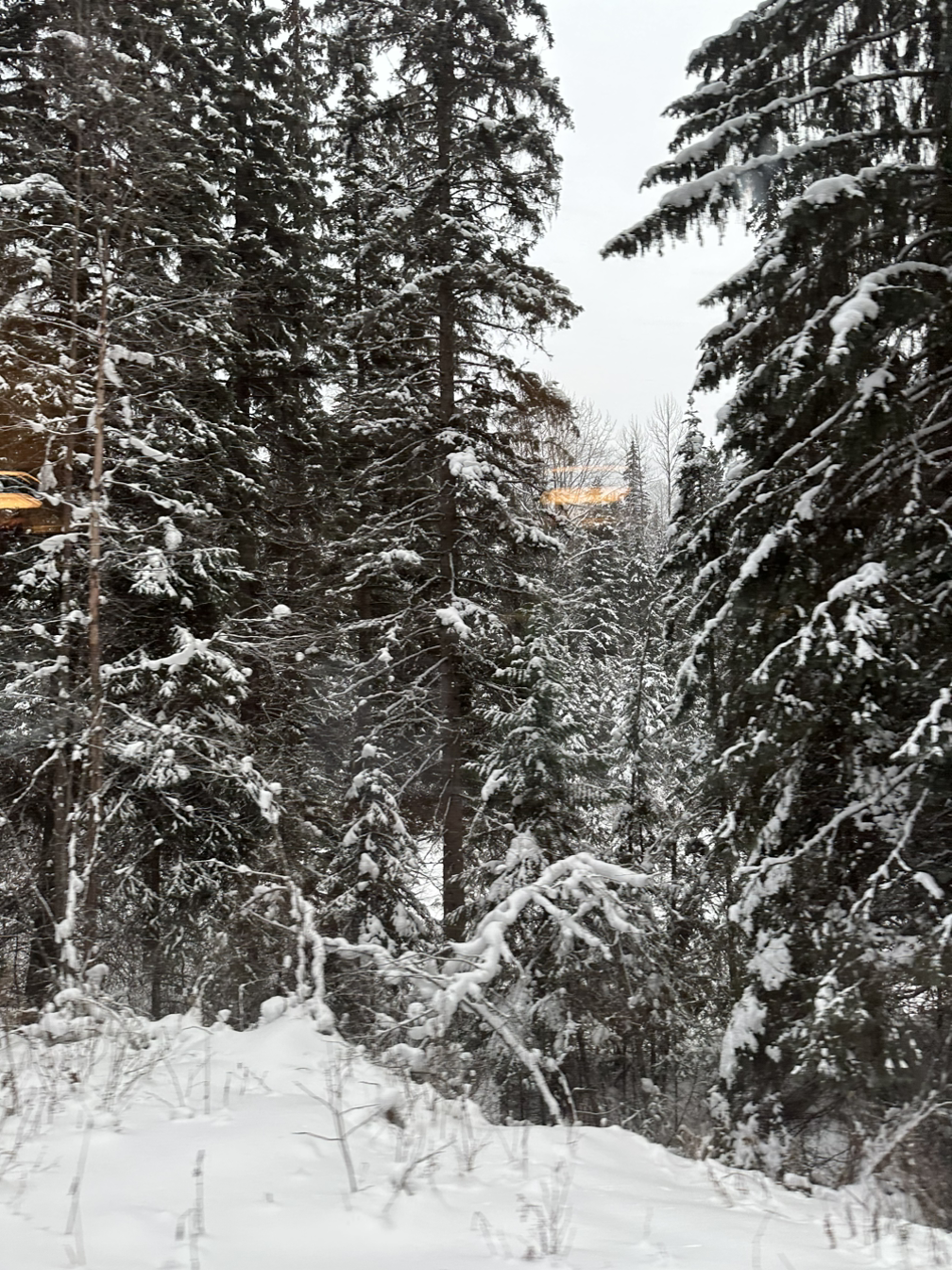 기차가 멈춰있었고, 눈앞에는 키가 큰 나무들과 푸른 눈이 쌓여있었다.