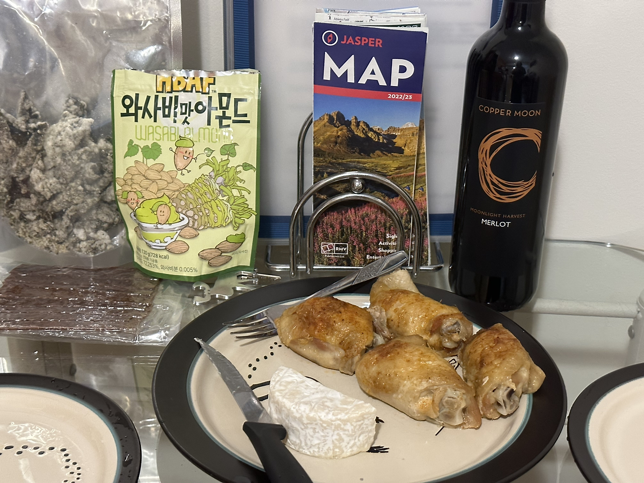 저녁은 간단하게, 마트에서 사 온 구운 닭을 먹었다. 그리고 와인 가게에서 추천받은 캐나다 와인을 샀는데 돌이켜보니 스페인과 프랑스에서 먹는 와인보다 더 맛있었다, 흑흑. 신기하게 캐나다 음식이 입에 잘 맞는다. 엄청 대단한 무언가는 없는데, 간이 괜찮다고 해야 할까. 저 닭도 짜게 생겨서는 별로 안 짜서 놀랐다.