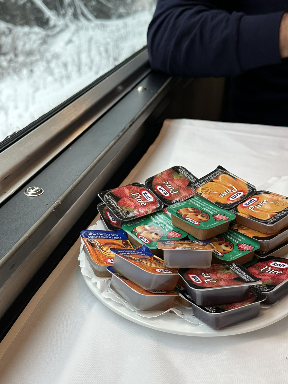 귀엽게 쌓여있던 각종 잼과 꿀. 궁금해서 곰돌이가 그려진 땅콩 스프레드도 먹어보았다. 아는 맛. 맛있는 맛.