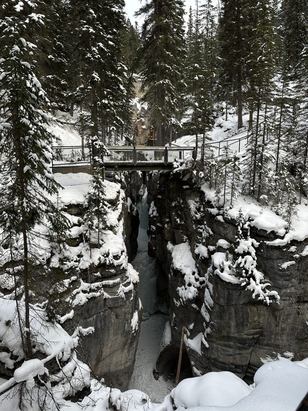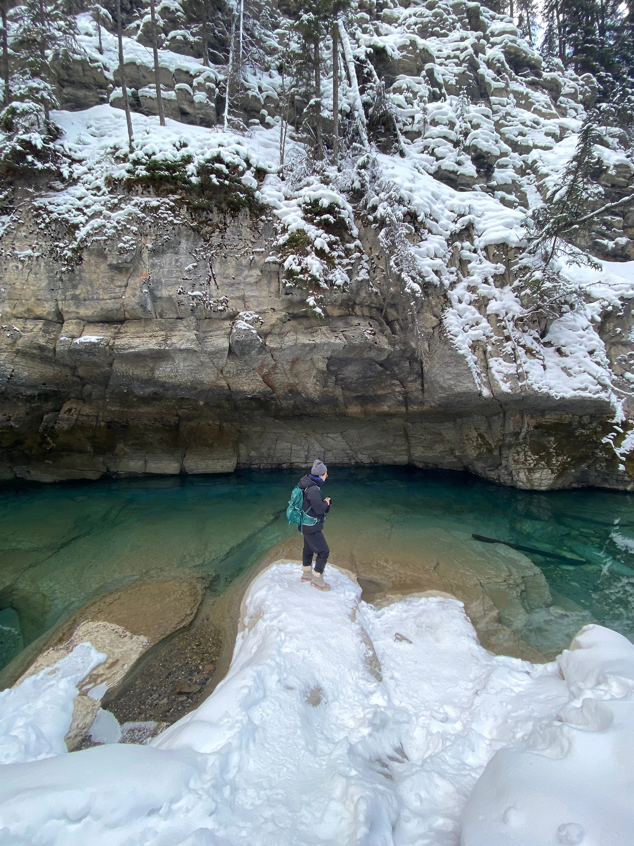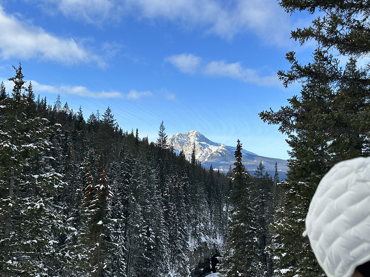 택시를 타고 도착한 멀린 캐년. 거리는 차로 5분 정도. 가격은 40달러... 분당 거의 1만 원이니까 캐나다의 택시 드라이버의 시급이란 참 어마어마하다. 근데 차를 타보면 알겠지만 이곳저곳에서 불러서 엄청나게 바쁘다. 과수는 오늘 흰색 호두모자를 쓰고 왔다. 이 모자 너무 귀여워서 모든 여러분께 추천하고 싶다.