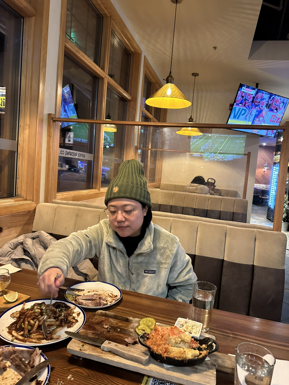 저녁은 가볍게 술 한잔 하고 싶다는 과수의 말에 가보고 싶었던 재스퍼 브루어리에 왔다. 자세히 보면 모자도 새로 산 피엘라벤 모자입니다.^^ 아니 너무 귀엽지 않습니까... 하여튼, 사진 속 내가 먹고 있는 것은 검정 떡볶이가 아니라 캐나다 음식인 푸틴이다. 말이 캐나다 음식이지 그냥 감자튀김에 그레이비소스를 얹고 치즈를 버무린 것이다. 그런 식이라면 나도 앞세울 수 있는 자작 요리가 많이 있다고요... 백종원이 캐나다에서 태어났다면 캐나다 음식이라는 이름에 걸맞은 진짜 다양한 요리를 선보였을 텐데.