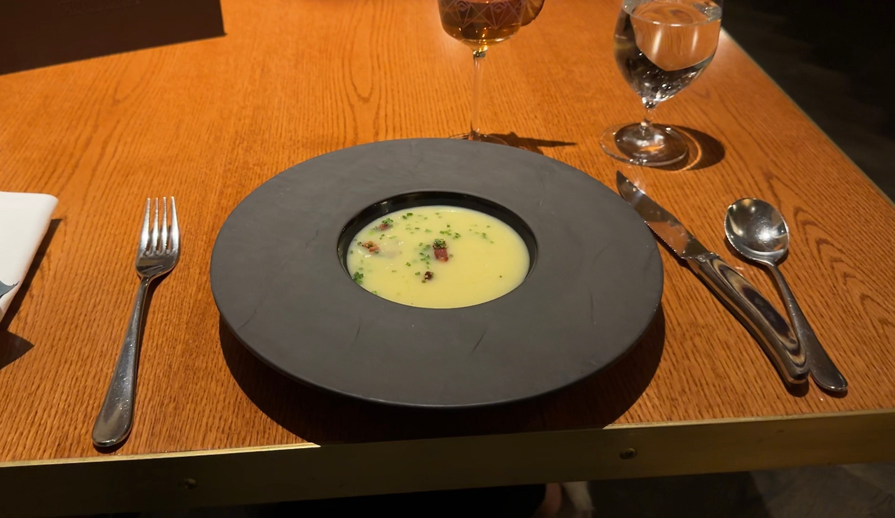 처음에 먹은 음식은 오늘의 수프였다. 베이컨이 들어간 포테이토 수프. 이름만큼 보장된 맛이었다. 집에서 만들어보고 싶네.